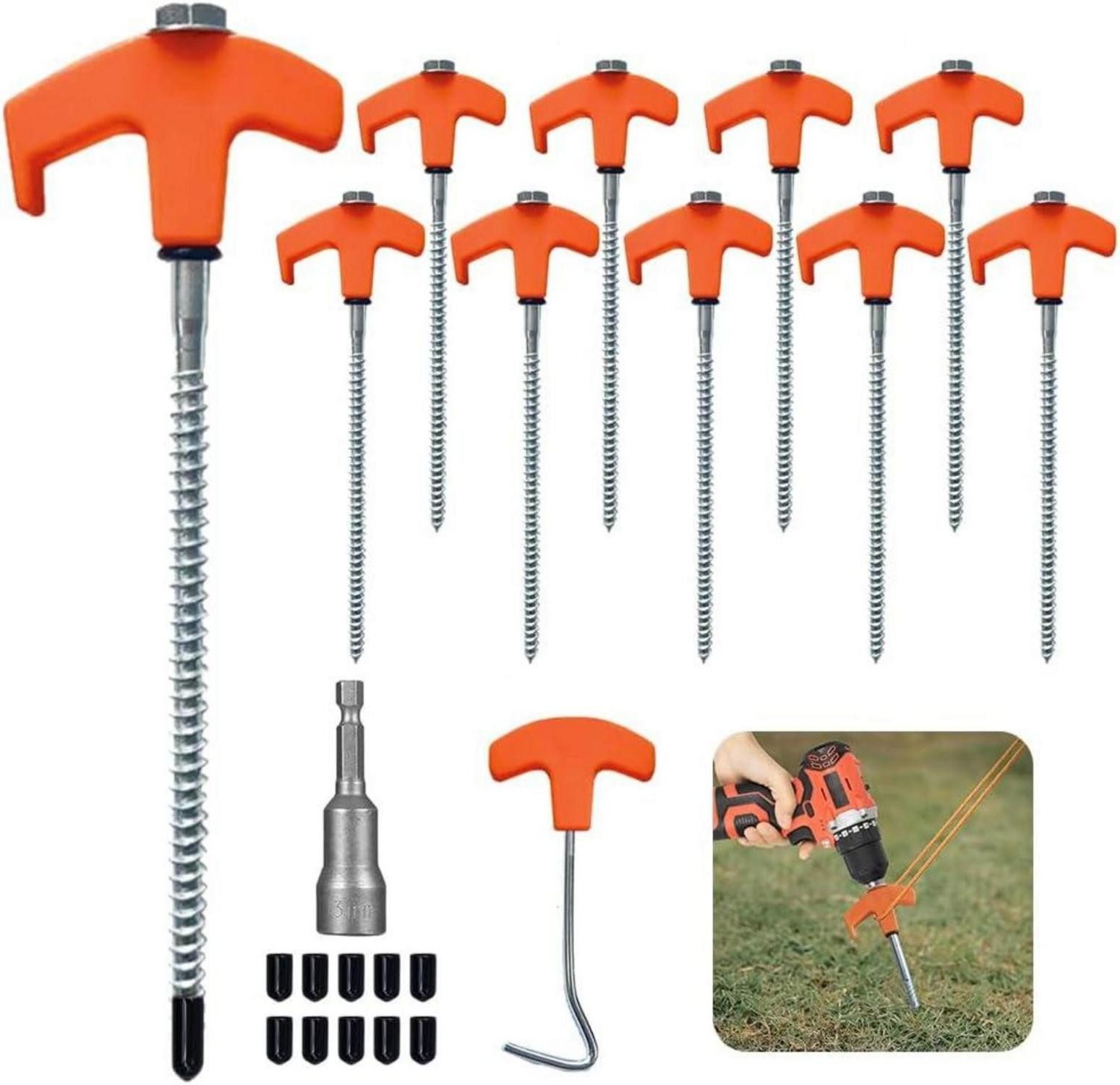 VIELSEITIGER EINSATZ: Das Schraubheringe Set kann zum Befestigen von Zelten, Pavillons, Markisen, Vordächern und Angelzubehör verwendet werden, es ist ein treuer Begleiter beim Camping und Angeln! Hergestellt aus hochwertigem Stahl und ausgestattet mit Abstandshaltern und Gummiringen, bieten unsere Zeltpflöcke eine einfache Handhabung und einen hervorragenden Halt beim Bohren in verschiedene harte Oberflächen. Die neuen Design-Zelt-Pegs können den Boden fester binden und Ihre Effizienz erheblich verbessern, Zeit und Mühe sparen. Es ist bequem zu tragen und wird Ihrem Camping keine unnötige Belastung hinzufügen. Dank ihrer Konstruktion können Sie sie blitzschnell mit einem Akku-Bohrschrauber oder Schlagschrauber in den Boden einsetzen – egal, ob es sich um Gras, harten Boden, Kies oder eine andere Oberfläche handelt. Das Produkt enthält 10 Zeltheringe 20cm, 1 Bit, 1 Nagelzieher, und 10 Schraubenabdeckungen, wodurch das Hinzufügen und Entfernen der Heringe zum Kinderspiel wird. Holen Sie sich jetzt unser Schraubheringe Set und genießen Sie stressfreie Camping- und Angelabenteuer!