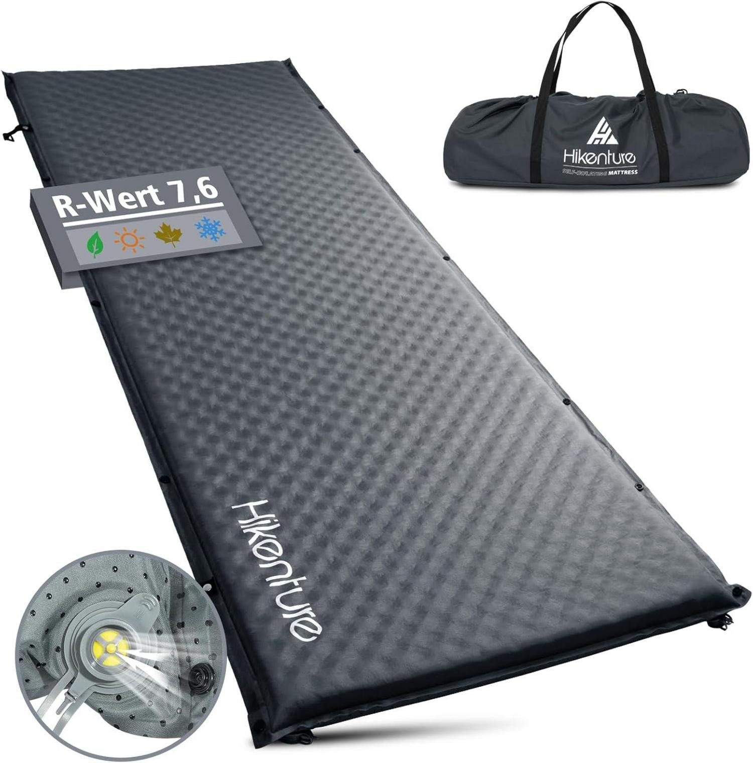 Die HIKENTURE Isomatte Selbstaufblasend bietet alles, was du für einen angenehmen Schlaf im Freien benötigst. Dank der Konstruktion mit zwei Ventilen kannst du die Isomatte blitzschnell entlüften und platzsparend verstauen. Die beigefügten Gurte und die praktische Tragetasche erleichtern den Transport. Diese Campingmatratze ist dein idealer Begleiter beim Zelten, auf Wanderungen oder Radreisen.