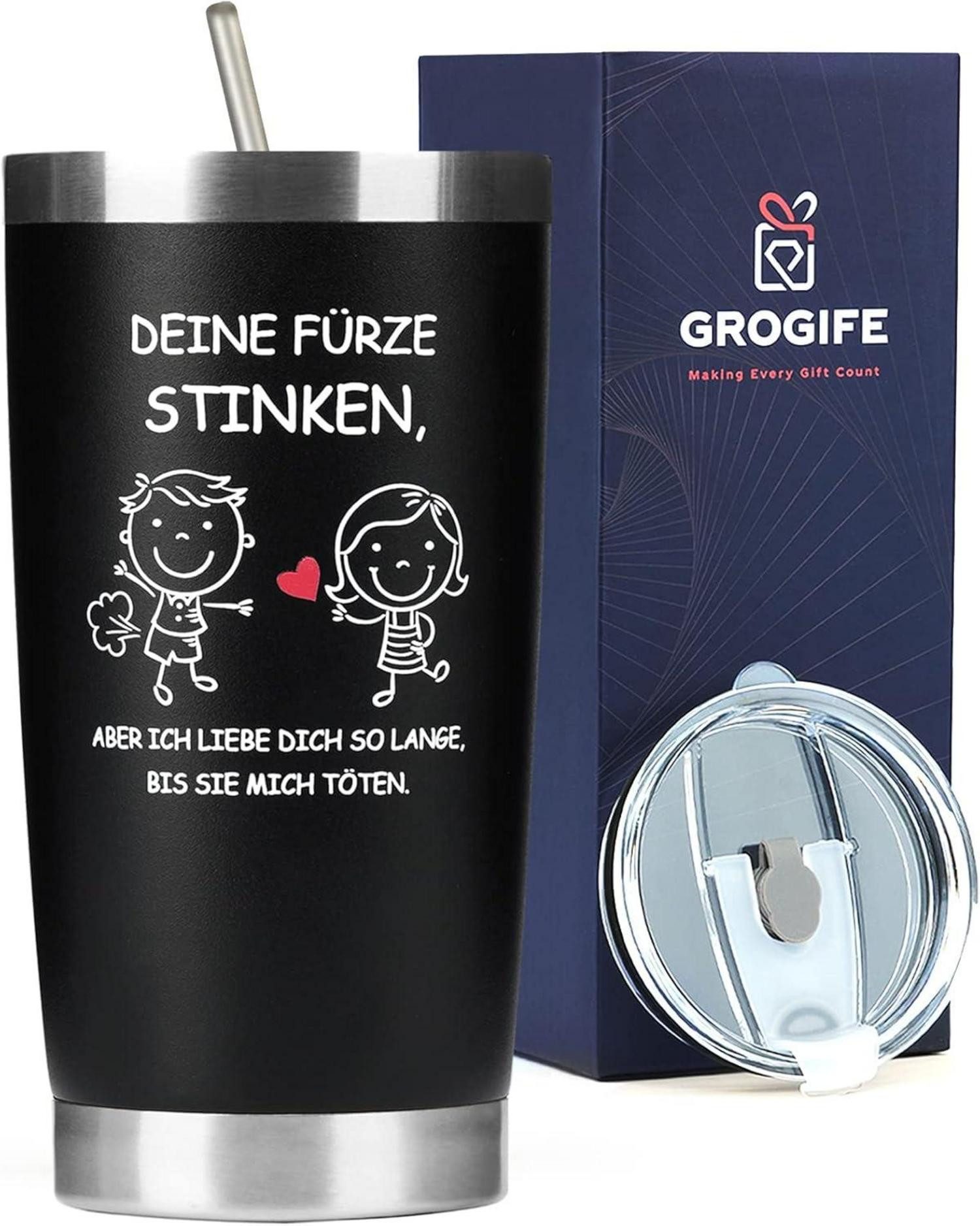 ???? Valentinstagsgeschenk für Partner Mann! - Eine richtig romantische und zugleich praktische Liebeserklärung kannst Du Deiner Partnerin oder Deinem Ehemann oder Freund mit dem Thermobecher machen. Der Thermobecher ist mit dem lustige und liebevollen Spruch "DEINE FÜRZE STINKEN, ABER ICH LIEBE DICH SO LANGE, BIS SIE MICH TÖTEN." verziert auf zwei Seiten. Mit unserem Thermobecher landen Sie immer einen Volltreffer!