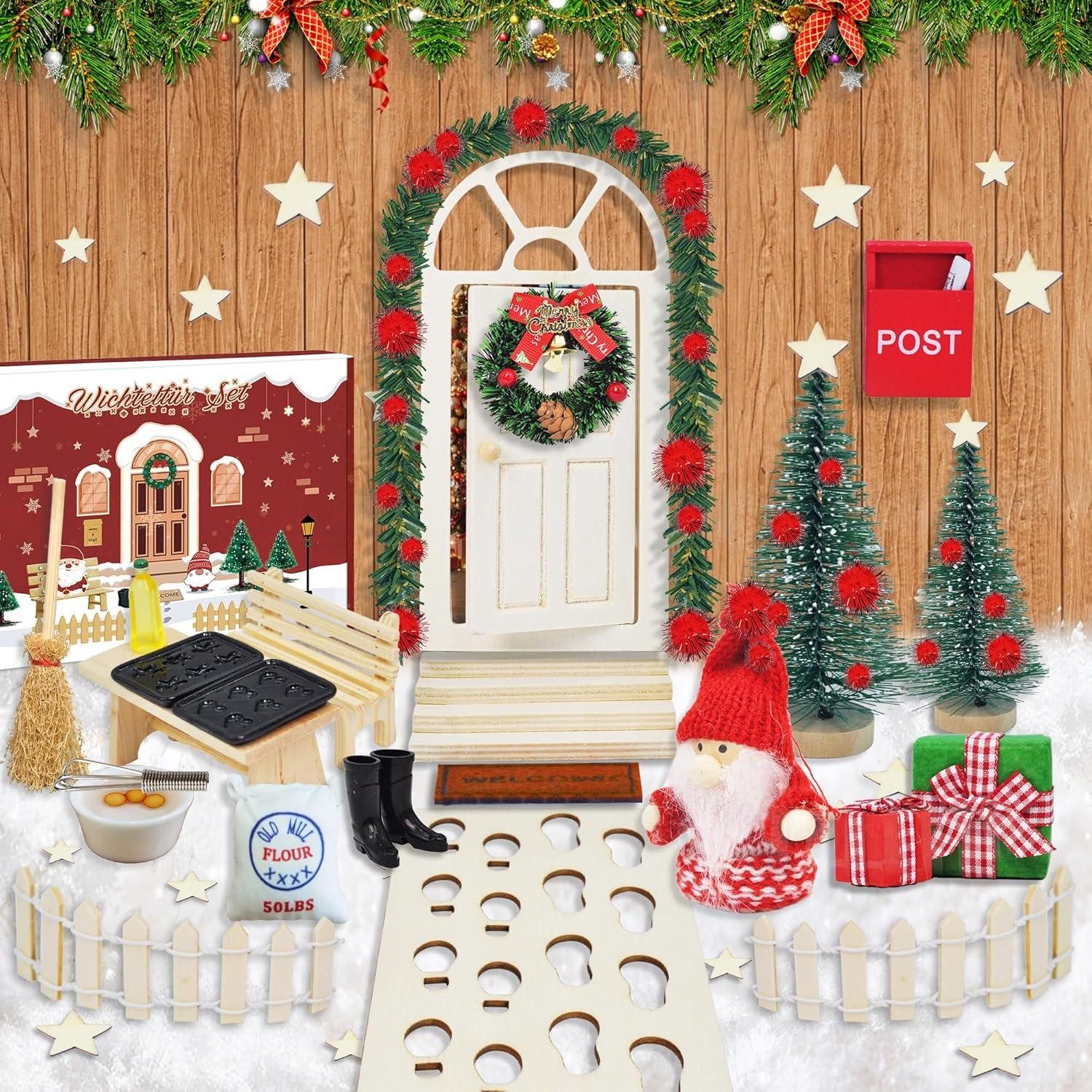 Erweiterte Artikelbeschreibung: Das 70-teilige Miniatur Wichtel Zubehör Weihnachten Set bietet alles, was Sie brauchen, um eine märchenhafte Weihnachtsszene zu kreieren. Von einer hölzernen Zwergentür über Girlanden, Kranz, Treppe, Weihnachtsbäume, Geschenke, Zaun und Fußspur-Holzbrett bis hin zu Stiefeln, Sternen und roten Bällen - dieses Set beinhaltet eine Vielzahl an liebevollen Details, die Ihre Weihnachtsdekoration komplett machen.Besonders faszinierend ist die Möglichkeit, die natürlichen Holzfarben der Wichteltüren und Zubehörteile individuell zu gestalten. Lassen Sie Ihrer Kreativität freien Lauf und verleihen Sie jedem Element Ihre persönliche Note.Mit den 3 enthaltenen Weihnachtsszenen - Wichteltür, Weihnachtsbaumset und Küchenzubehör - können Sie gemeinsam mit Ihrer Familie magische Geschichten erschaffen. Jede Szene bietet Raum für Fantasie und lädt dazu ein, eine festliche Weihnachtsatmosphäre zu schaffen.Nutzen Sie dieses Set, um Ihr Zuhause, Schaufenster, Kamin oder Weihnachtsbaum zu schmücken und verbreiten Sie die Freude der Weihnachtszeit. Das Wichtel Zubehör Komplettset ist auch eine tolle Geschenkidee für alle, die Weihnachten lieben und gerne basteln.