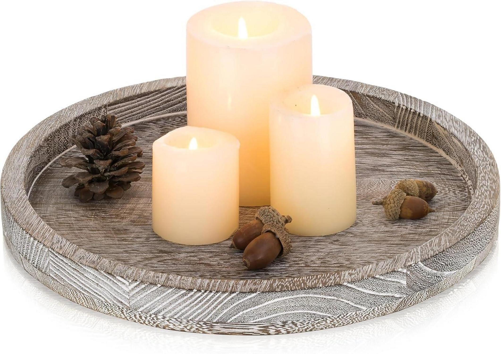 Einzigartige Holzmaserung: Romadedi rustikales Holztablett hat eine einzigartige organische Holzmaserung, da dieses Kerzentablett aus natürlichem Holz hergestellt ist. Das rustikale Aussehen passt gut zur modernen Bauernhof-Ästhetik der Einrichtung.