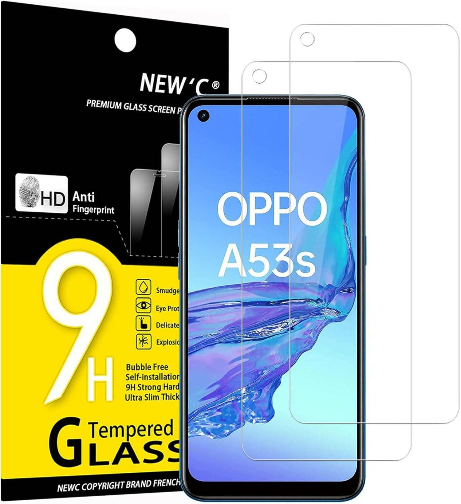 NEW'C 2 Stück, Panzer Schutz Glas für Oppo A53 / A53s bietet Ihnen ultimativen Schutz für Ihr Smartphone. Mit einer Härte von 9H ist dieses Panzerglas widerstandsfähiger als ein Messer und schützt Ihr Gerät zuverlässig vor Kratzern und Stößen. Die spezielle Ölabweisende Beschichtung sorgt dafür, dass Fingerabdrücke und Schmierereien der Vergangenheit angehören. Ihr Display bleibt immer makellos und lässt sich mühelos reinigen.