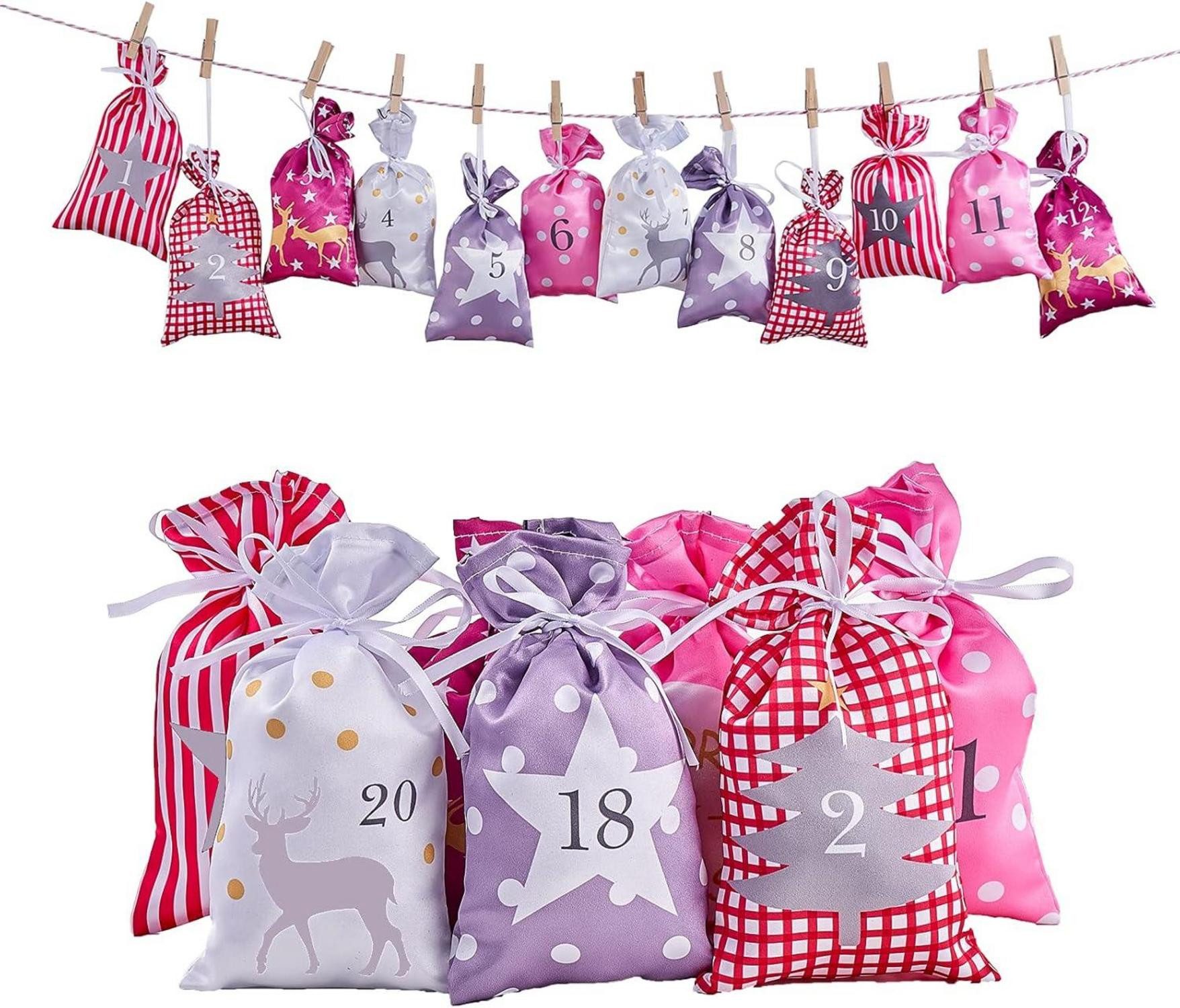 Die bereits aufgedruckten Zahlen auf den Stoffsäckchen erleichtern das Befüllen und sorgen für eine Countdown-Funktion bis Weihnachten. Jeder Tag wird somit zu einer spannenden Überraschung. Die verschiedenen Farben und Muster, wie Hirsch, Weihnachtsbaum und Sterne, machen den Adventskalender noch abwechslungsreicher und persönlicher.