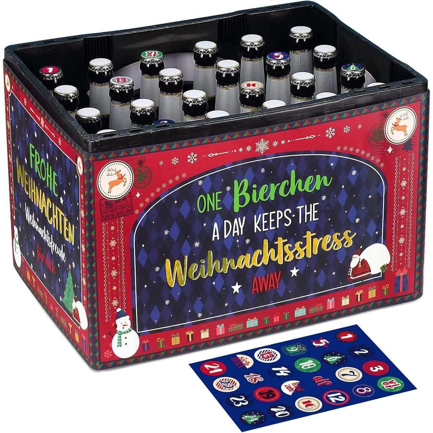 Stell dir vor: Die Vorweihnachtszeit wird zu deiner persönlichen Festtagsstimmung. Mit diesem Adventskalender holst du dir eine entspannende, gemütliche Atmosphäre ins Zuhause. Dieses Countdown-Bierkasten-Bastelset ist speziell für Bierliebhaber konzipiert und verwandelt einen Bierkasten in eine festliche Überraschung. Die Design-Highlights mit „One Bierchen A Day Keeps The Weihnachtsstress Away“ und „Frohe Weihnachten“ bringen Weihnachtsglanz direkt zu dir. Die Maße betragen 144x26 cm, die Aufkleber sind 2 cm groß, und es passt perfekt für Bierkästen in 43x29x26 cm. Gefertigt ist der Kalender aus Papier – leicht, handlich und ideal für eine umweltbewusste Festvorbereitung.