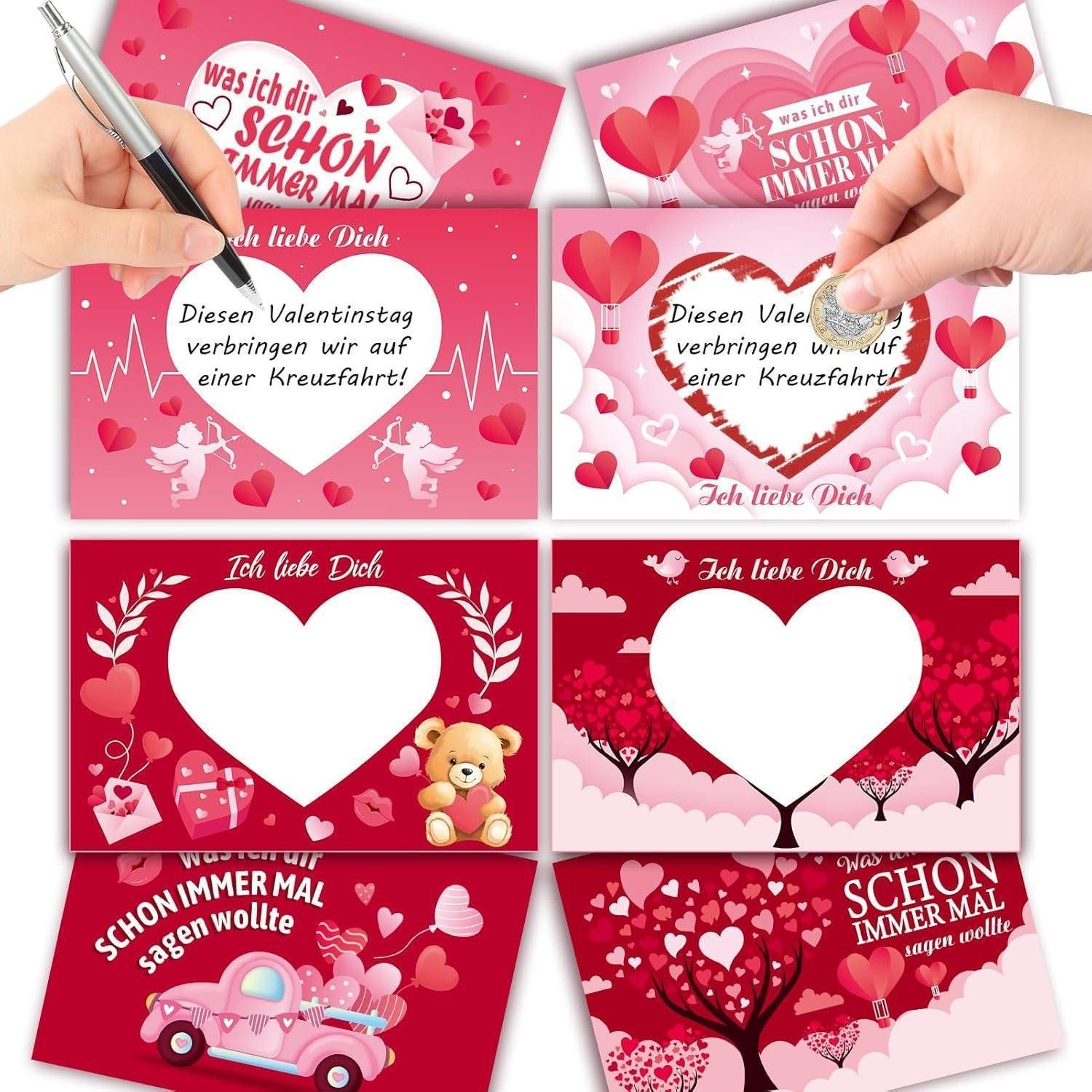 Stell dir vor: Die perfekte Liebeserklärung kommt nicht in Worten, sondern als kleines, spannendes Erlebnis. Diese Romantisch Rubbelkarten geben dir 12 Gutschein-Karten, die darauf warten, von dir beschrieben und mit Herz-Rubbelaufklebern geschützt zu werden. Vier Designs, jeweils drei Karten – insgesamt 12 Stück – plus 12 Herz-Rubbelaufkleber. Ideal für Valentinstag, Geburtstage, Heiratsanträge, Jubiläen und all die romantischen Momente, die eine persönliche Note verdienen.