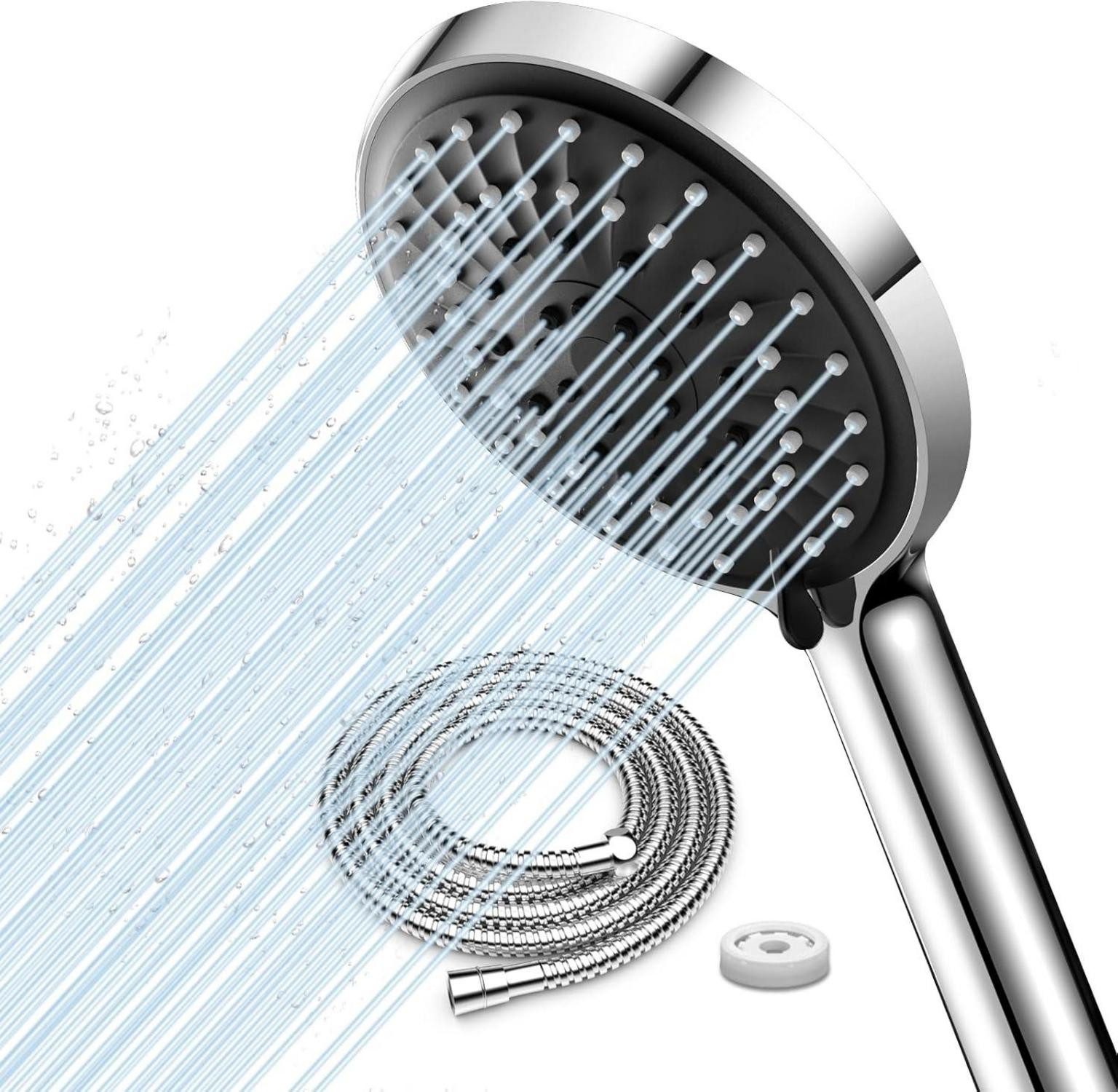 Der Duschkopf besteht aus hochwertigem ABS-Material mit mehrschichtiger Verchromung, was ihn leicht, langlebig, korrosionsbeständig und farbecht macht. Die fortschrittliche Turbolader-Technologie verbessert effektiv den Wasserdruck, während der Durchflussbegrenzer sorgsam Wasser spart, ohne auf Komfort zu verzichten. Mit einem Wasserdurchfluss von 9.5L/min erfüllt dieser Duschkopf die Bedürfnisse nach Druck und Wassereinsparung.