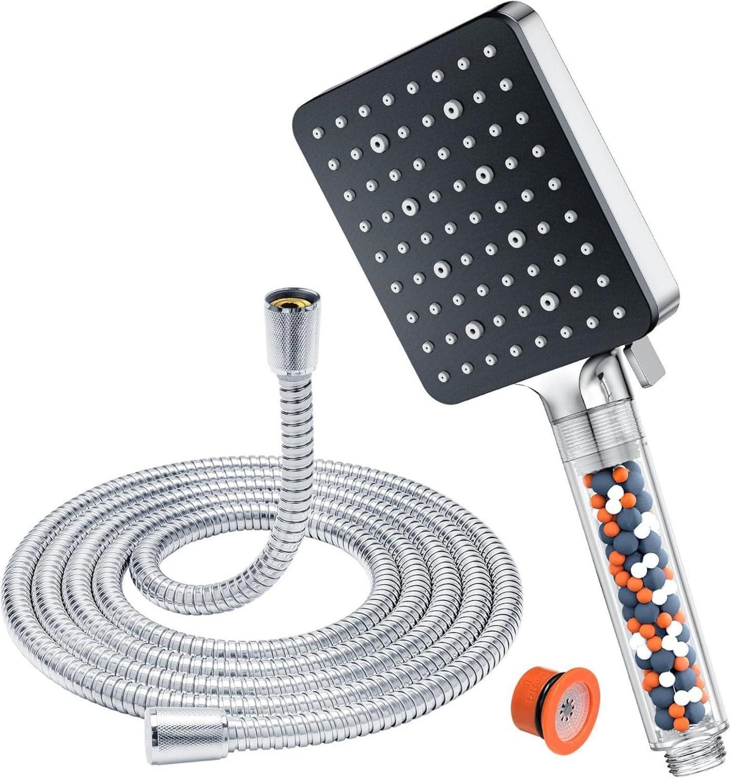Der Duschkopf verfügt über eine glatte Chromoberfläche, die kratzfest und langlebig ist. Dank des speziellen Ein-/Aus-Knopfes können Sie die Strahlart bequem mit einer Hand einstellen. Mit 6 Strahlarten, darunter Regen, Massage, starker Strahl, sauerstoffhaltiger Duschstrahl und Mischmodus, bietet dieser Duschkopf für jeden etwas. Von der täglichen Haarwäsche über sanftes Duschen bis hin zur Massage - dieses Produkt erfüllt alle Anforderungen.