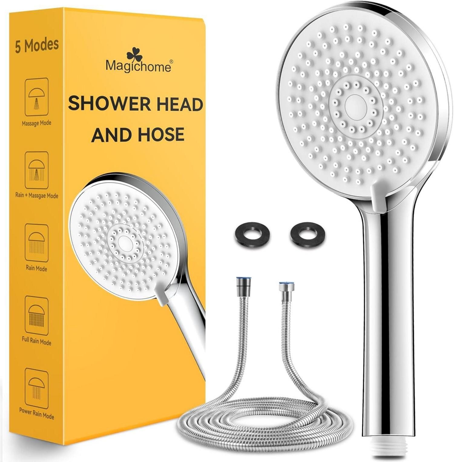 Magichome Duschkopf Wassersparend mit Schlauch 2M, wassersparender Duschkopf mit 5 Strahlarten, Regendusche mit Druckerhöhung Weiß A6 bietet Ihnen ein erstklassiges Duscherlebnis mit zahlreichen Vorteilen. Dieser Duschkopf ist leicht zu installieren und zu reinigen, sodass Sie sich ganz auf Ihr Duschvergnügen konzentrieren können. Dank des Silikondüsendesigns ist die Reinigung ein Kinderspiel, sodass Kalkablagerungen problemlos entfernt werden können.