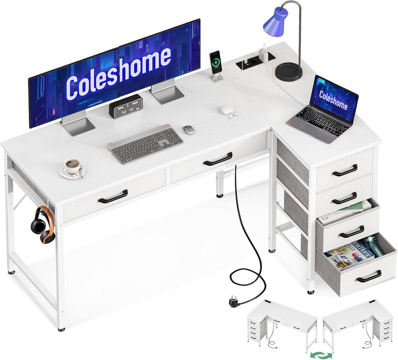 Dieser Coleshome Eckschreibtisch mit 6 Schubladen bietet nicht nur Funktionalität, sondern auch Stil für Ihr Zuhause. Mit einem stabilen Metallrahmen und einer kratzfesten, wasserabweisenden Tischplatte aus hochwertigem Spanplattenmaterial ist dieser Schreibtisch langlebig und pflegeleicht. Die verstellbaren rutschfesten Füße sorgen für Stabilität auf verschiedenen Bodenbelägen.