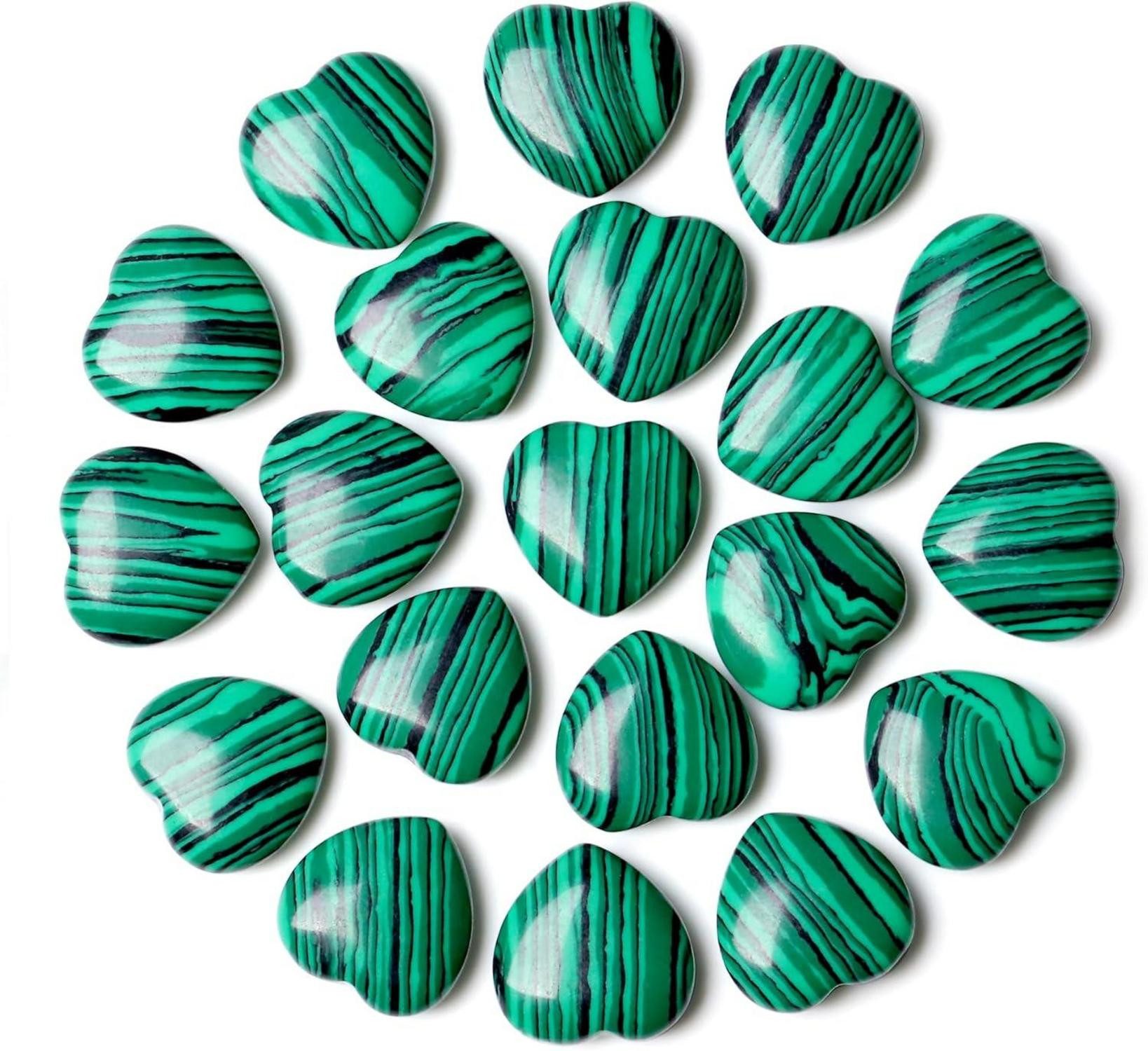 Das QINJIEJIE 20 Stück Malachit Herz Edelsteine Heilung Kristall Set ist das perfekte Geschenk für Ihre Liebsten oder auch für sich selbst. Jeder herzförmige Kristall wird sorgfältig ausgewählt und einmalig poliert, um optimale Heilungskräfte zu gewährleisten.