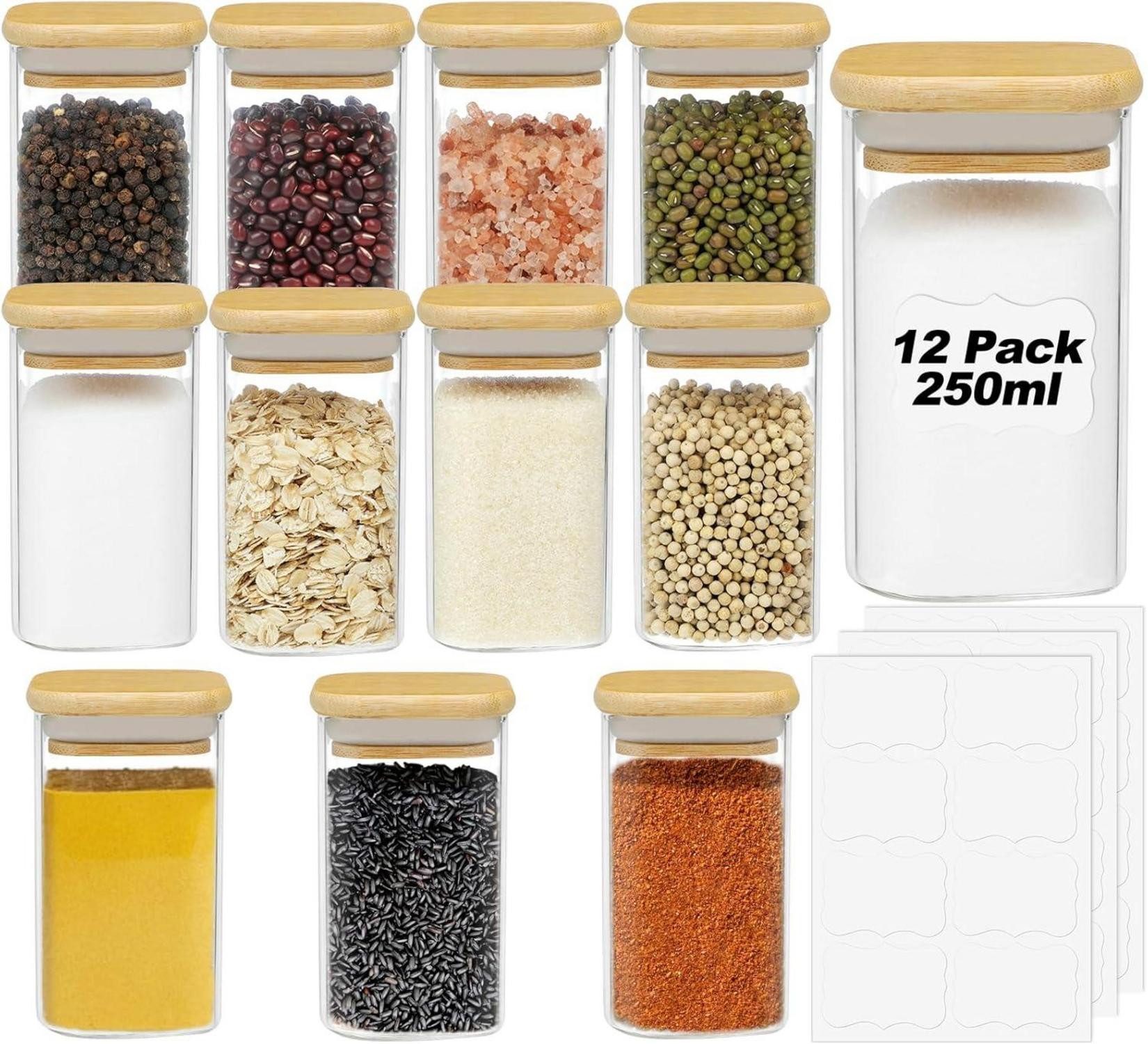 Die YUEYEE Gewürzgläser sind die ideale Lösung, um Ihre Küche organisiert zu halten. Mit 12 eckigen Gewürzbehältern mit Bambusdeckeln und Etiketten können Sie Ihre Gewürze stilvoll aufbewahren. Die guten Abdichtungseigenschaften der Dichtungen auf den Bambusdeckeln sorgen dafür, dass Ihre Lebensmittel trocken und frisch bleiben. Aus hochwertigem Borosilikatglas gefertigt, sind die Gewürzgläser sicher im Gebrauch und können vielseitig eingesetzt werden.
