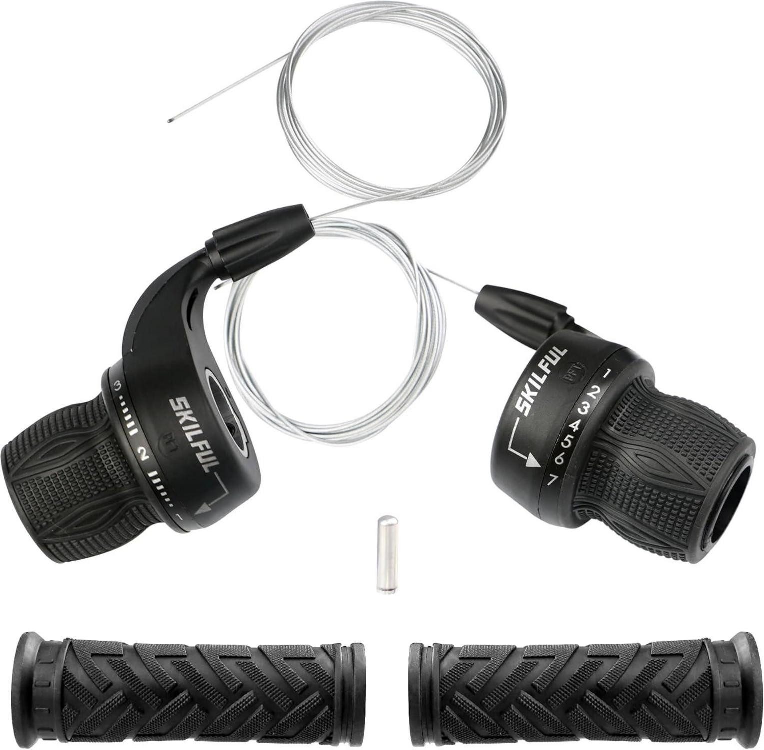 Hergestellt aus hochwertigem Gummi minimiert der Drehgriff-Schalter Ermüdungserscheinungen an Händen, Handgelenken und Ellbogen während langer Fahrten. Mit Geschwindigkeitsoptionen von 3 * 7 (21-Gang) können Sie die Gangschaltung je nach Gelände und Bedarf anpassen. Der Schalthebel passt auf Lenker und Griffe mit einem Durchmesser von 7/8 Zoll, was eine universelle Anwendung gewährleistet.