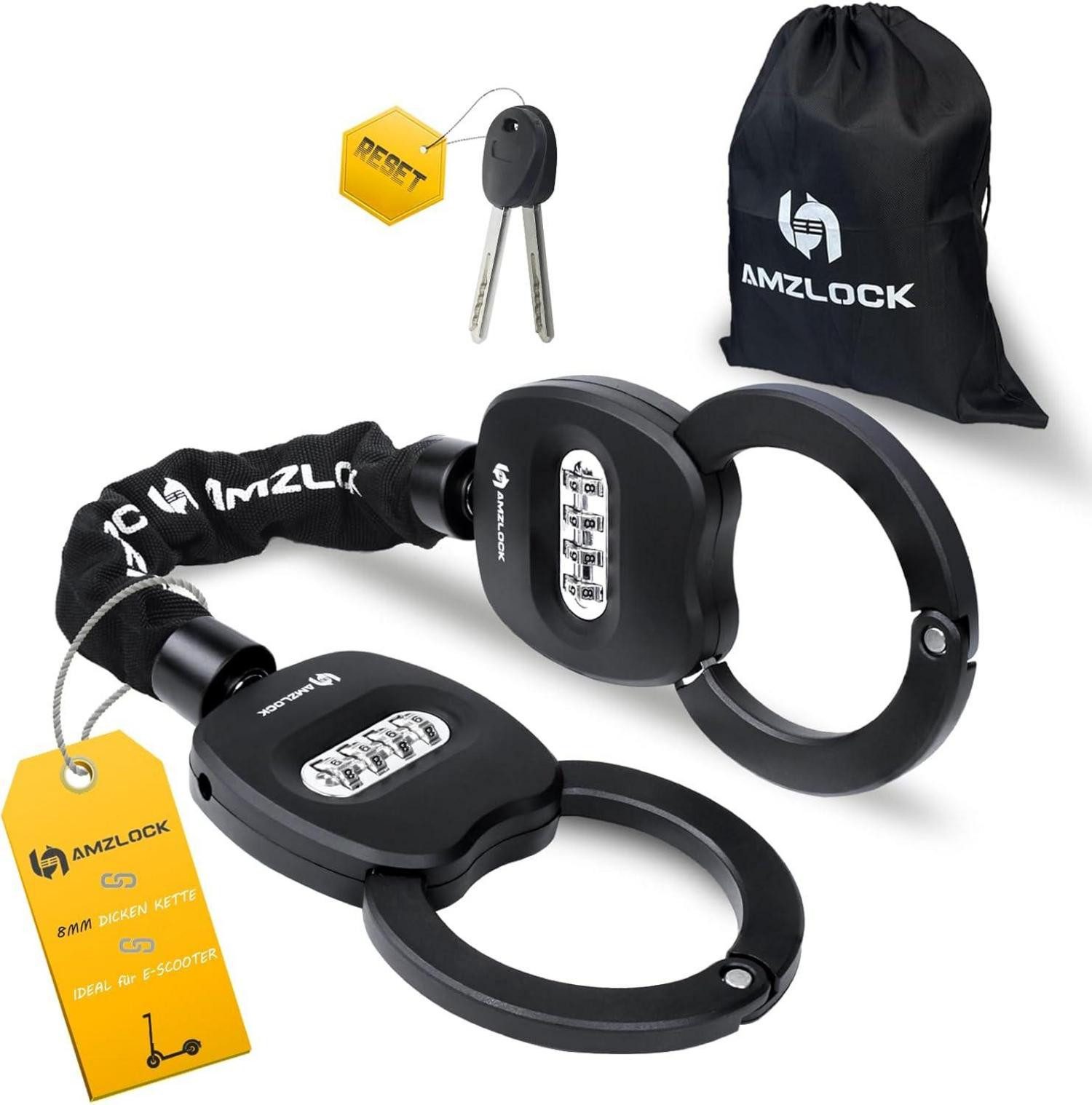 Das AMZLOCK E Scooter Schloss ist die ideale Sicherheitslösung für deinen E Scooter. Mit einer Длина von 65cm und einem Gewicht von 1.67kg bietet es die perfekte Balance zwischen Robustheit und Tragekomfort. Die 8mm dicke gehärtete Stahlkette sorgt für maximale Sicherheit und schützt deinen Scooter vor Diebstahl.