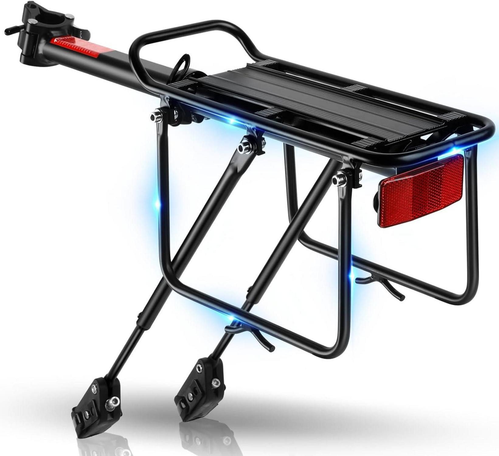 Die Seite des Fahrrad Gepäckträger Hinten ist mit einer verstellbaren Stützstange ausgestattet, die einfach zwischen 37 und 47 cm Höhe eingestellt werden kann. Dadurch eignet sich der Gepäckträger für 24-29 Zoll Fahrräder wie Mountainbikes, Rennräder, E-Bikes und Gravel Bikes (nicht geeignet für Kinderfahrräder und Falträder).