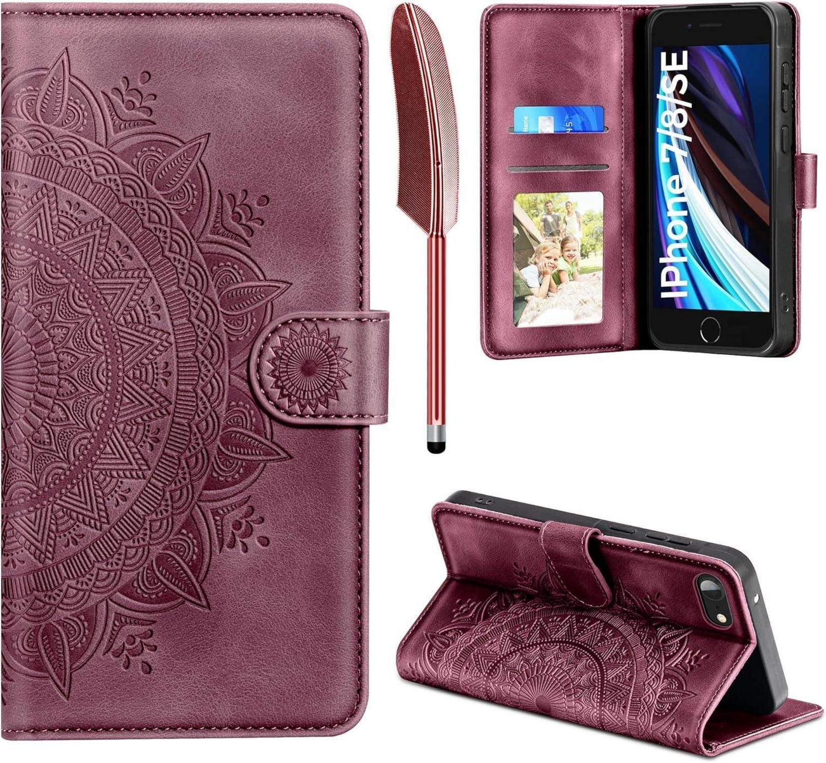 [Exquisite Verarbeitung]: Kompatibel mit iPhone SE/8/7 Wallet Case ist aus hochwertigem PU-Leder vintage klassischen style und die edle Prägung sieht stylisch aus. Es besteht aus einem TPU-Innenkoffer, der eine schnelle Wärmeableitung ermöglicht und eine starke Schlagfestigkeit bietet. Die erhöhten Kanten schützen den Bildschirm und die Kamera vor Kratzern.