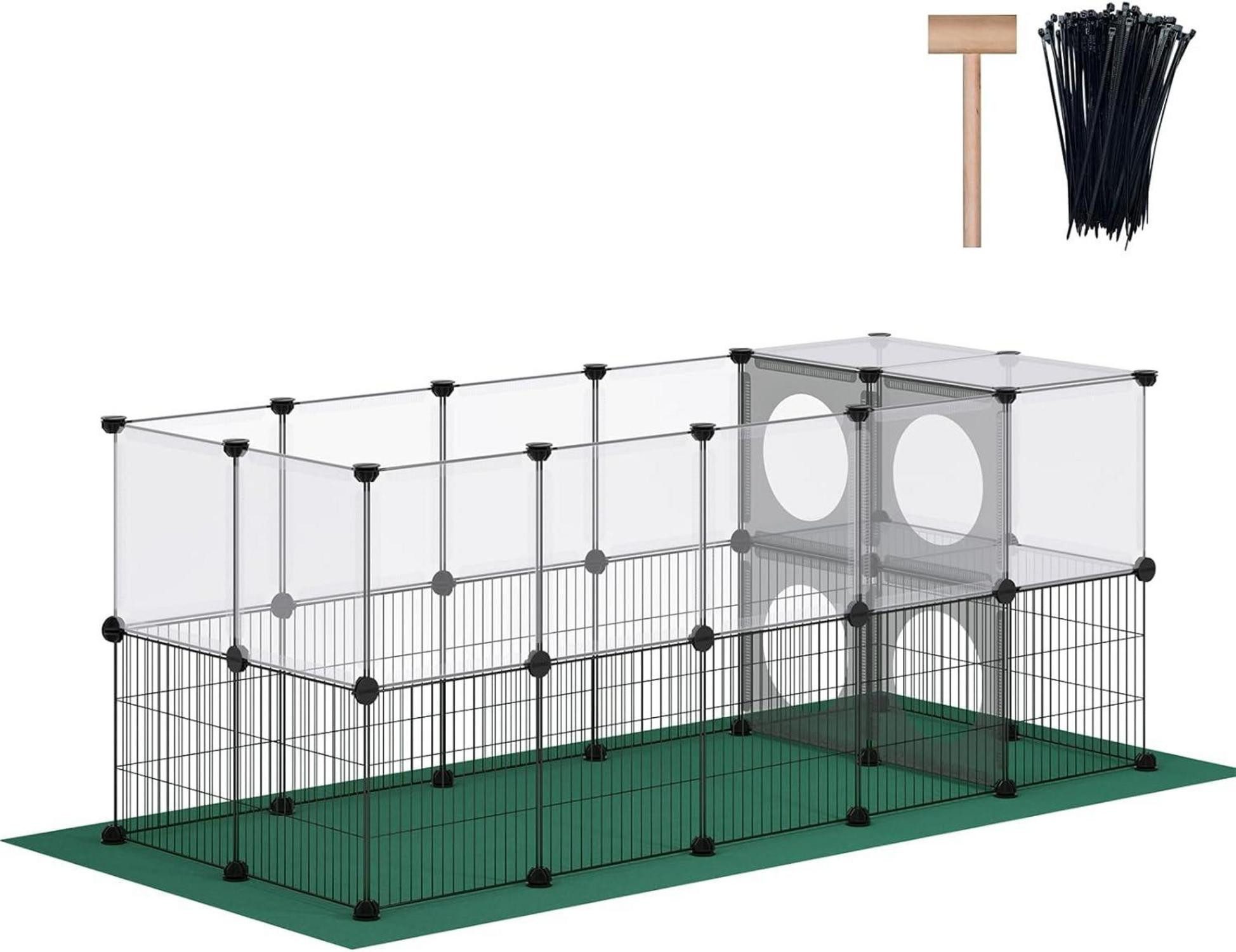 Der DINMO Laufstall für Kleintiere mit Oxford-Matte ist die ideale Lösung, um Ihren Haustieren einen sicheren Raum zum Spielen zu bieten. Dank der mitgelieferten Steckverbindern und Kabelbinder können Sie den Laufstall in individuellen Formen zusammenbauen, die perfekt in Ihren Raum passen. Die grünen Oxford-Stoffmatten sind rutschfest, leicht zu reinigen und schützen den Boden vor Kratzern und Korrosion durch Urin.