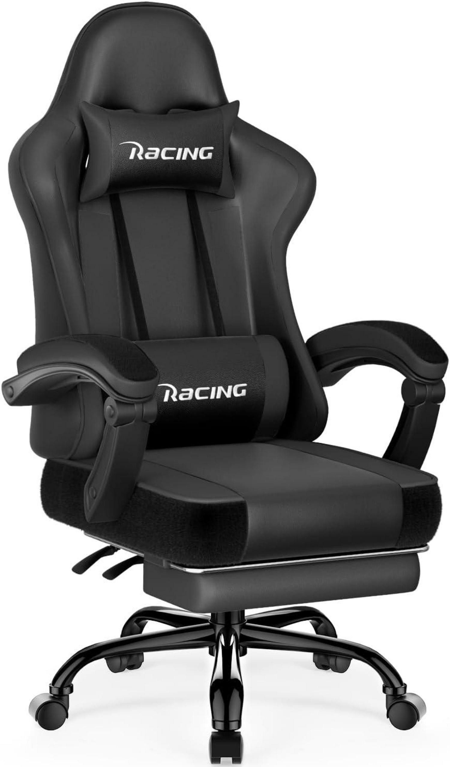 Beschreibung: Der Homimaster Gaming Stuhl bietet die perfekte Kombination aus Komfort, Stil und Funktionalität. Mit seinem einzigartigen Design und den vielfältigen Verstellmöglichkeiten ist dieser ergonomische Gaming Chair ein Must-Have für jeden Gamer. Die verstellbare Sitzhöhe, Armlehnen, Kopfkissen, Lendenkissen und Fußstütze ermöglichen es Ihnen, den Stuhl ganz nach Ihren Bedürfnissen anzupassen. Egal, ob Sie entspannen, arbeiten oder spielen, dieser Stuhl bietet Ihnen den optimalen Komfort.Die hochwertigen Materialien, wie der hochdichte Styling Schwamm und das PVC+PU Leder, sorgen für eine angenehme Sitzfläche, die atmungsaktiv und bakterienresistent ist. Die robuste Metallkonstruktion und der verbesserte Sitzmechanismus gewährleisten Stabilität und Langlebigkeit. Zudem ist die Rückenlehne in verschiedenen Winkeln verstellbar, um Ihnen die bequemste Position zu ermöglichen.Dank seiner ergonomischen Gestaltung unterstützt der Gamer Stuhl Ihre natürliche Rückenkurve und bietet eine effektive Entlastung für Kopf, Schultern und Taille. Die einzigartige Fußstütze ermöglicht es Ihnen, Ihre Beine hochzulegen und sich zu entspannen, während Sie in Ihre Spiele eintauchen. Mit einer Belastbarkeit von bis zu 150kg und der SGS-Zertifizierung der Gasdruckfeder können Sie sich darauf verlassen, dass dieser Stuhl sowohl komfortabel als auch sicher ist.Erleben Sie mit dem Homimaster Gaming Stuhl stundenlangen Komfort und Unterstützung. Egal, ob Sie arbeiten, spielen oder einfach nur relaxen möchten, dieser Stuhl wird Ihre Erwartungen übertreffen und Ihnen ein unvergleichliches Sitzerlebnis bieten.