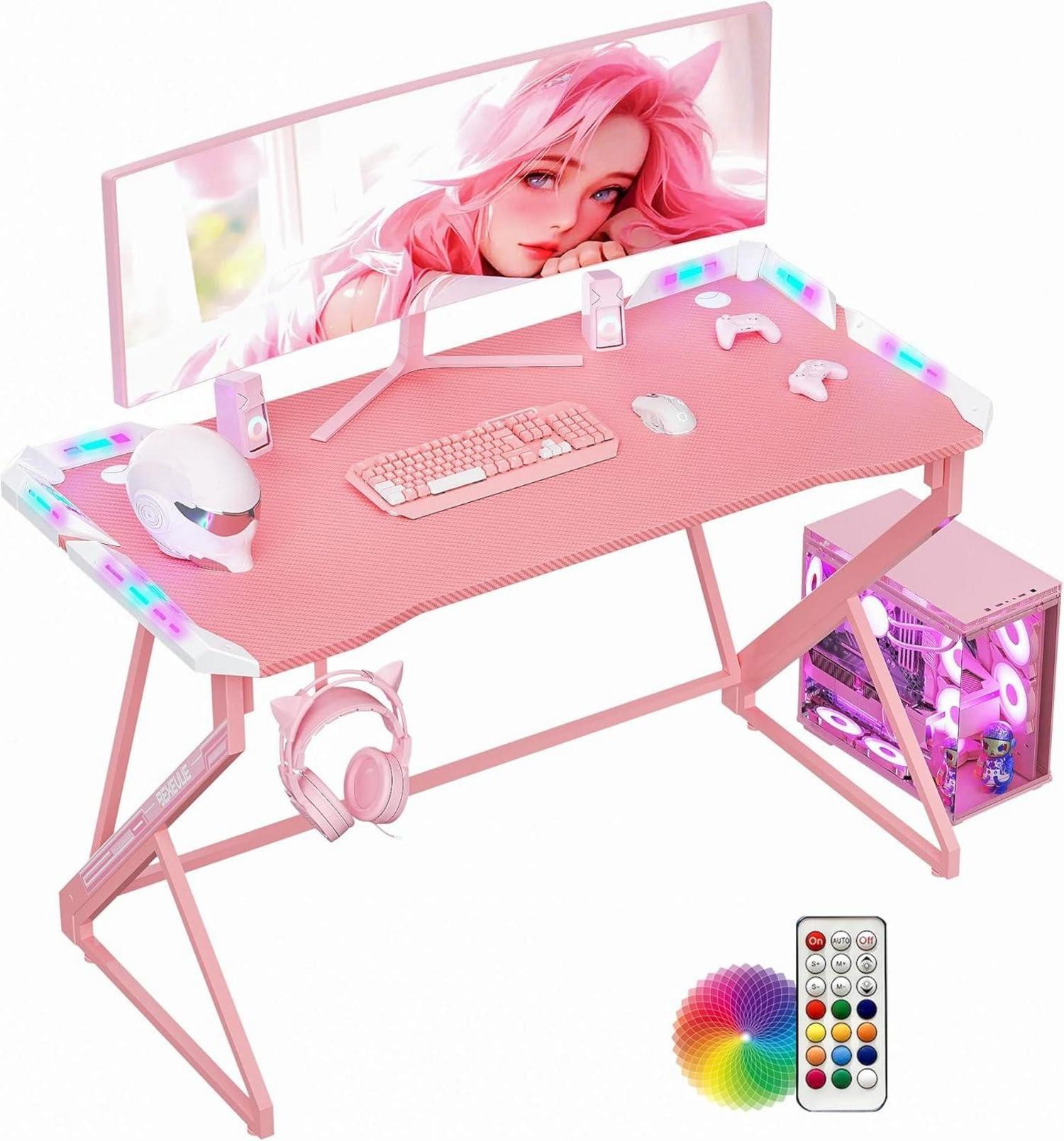 Die integrierte LED-Beleuchtung verwandelt dein Zimmer in eine Gaming-Oase und schafft die perfekte Atmosphäre für lange Gaming-Sessions. Der Gaming-Schreibtisch verfügt zudem über einen praktischen Kopfhörerhaken, damit deine Ausrüstung immer griffbereit ist und dein Schreibtisch aufgeräumt bleibt.