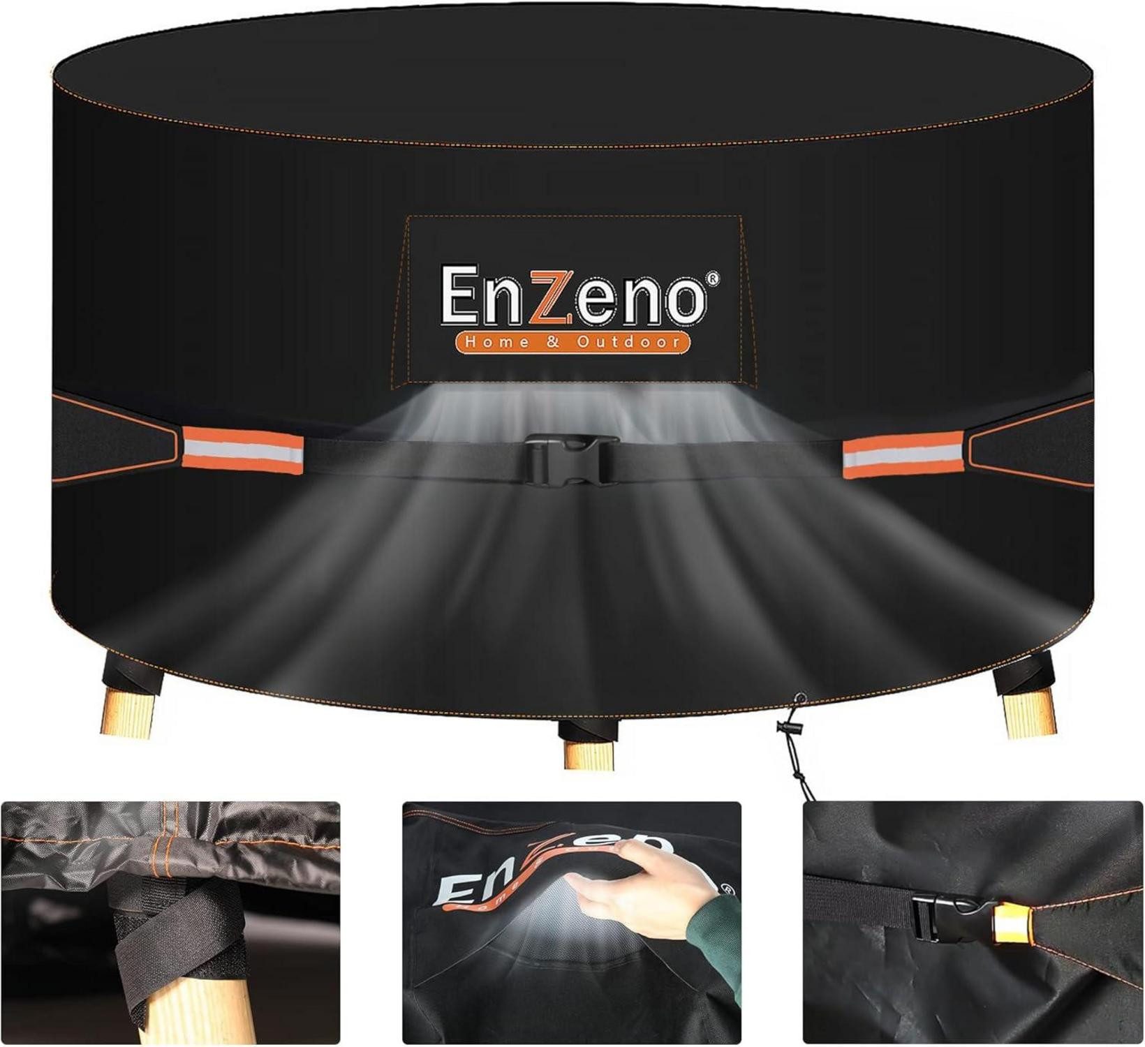 Diese runde Gartenmöbel-Abdeckung von Enzeno passt perfekt für Tische und Stühle mit einem Durchmesser von bis zu 190 cm und einer Höhe von 80 cm. Ideal für Esstische, Rattanmöbel, Couchtische und mehr. Die verbesserte dreidimensionale Entlüftung der 2. Generation sorgt für eine effektive Luftzirkulation und hält Ihre Möbel trocken und schimmelfrei.