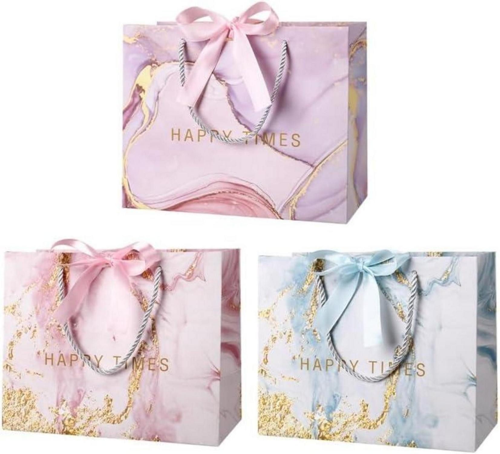 Packungsinhalt: Sie erhalten drei verschiedene Arten von Geschenktüten, in denen Geschenke, Kunsthandwerk, Desserts, Kekse, Süßigkeiten usw. aufbewahrt werden können. Mehrzweck-Geschenktüten: Geschenktüten eignen sich für Geburtstage, Partys, Hochzeiten, Weihnachten, Erntedankfest, Neujahr, Muttertag, Vatertag, Valentinstag und viele andere Anlässe. Einzigartiges Design: Die Geschenktüte ist mit einem Marmormuster gestaltet und mit einem Schleifenband verziert, was elegant und schön ist; die Verwendung unserer Geschenktüten zum Verpacken von Geschenken kann Ihre Geschenke exquisiter und luxuriöser aussehen lassen. Größe: Die Размер jeder Geschenktüte beträgt 25 x 20 x 12 cm und eignet sich zum Verpacken einiger Geschenke in Standardgröße oder kleiner und mittlerer Größe. Der Boden der Geschenktüte ist rechteckig, damit die Geschenktüte stehen kann. Material: Unsere Geschenktüten bestehen aus Pappe, sind stark zäh, haben eine gute Tragfähigkeit, sind langlebig, nicht leicht zu zerreißen, wiederverwendbar.