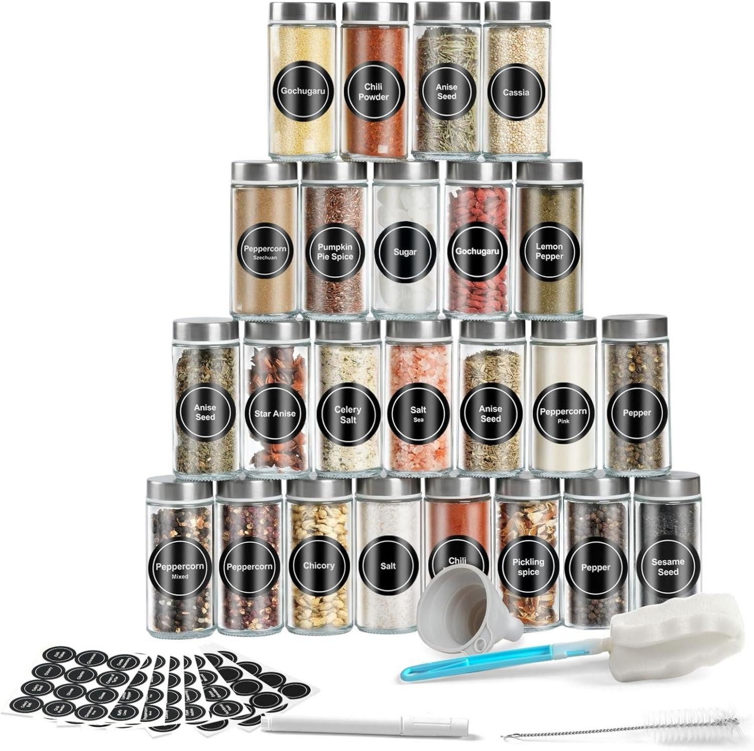 Hergestellt aus BPA-freiem Glas sind die Gewürzgläser transparent, damit Sie den Füllstand Ihrer Gewürze immer im Blick haben. Die mitgelieferten Etiketten und der Stift ermöglichen es Ihnen, jedes Gewürz klar zu kennzeichnen und Ihre Küche ordentlich zu organisieren. Verwenden Sie den Silikontrichter, um Gewürze präzise hinzuzufügen, ohne zu verschütten.