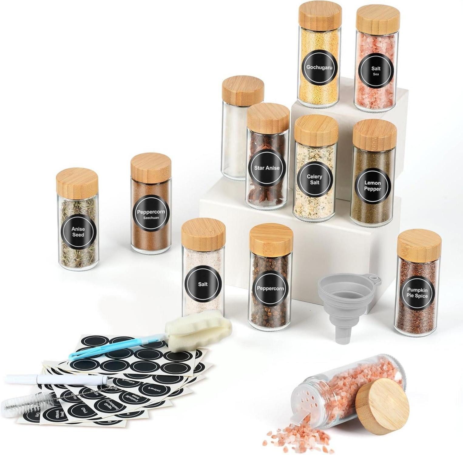 Das Set enthält 12 Gläser mit einem Fassungsvermögen von 120 ml, unterschiedliche Innendeckel für verschiedene Streuoptionen, Etiketten zum Beschriften der Gläser, einen Stift, einen Trichter sowie Bürsten zur Reinigung. Das hochwertige BPA-freie Glas ist transparent und ermöglicht es Ihnen, den Inhalt jederzeit zu erkennen. Die Gläser sind nicht nur funktional, sondern auch dekorativ und passen perfekt in jede Küche.