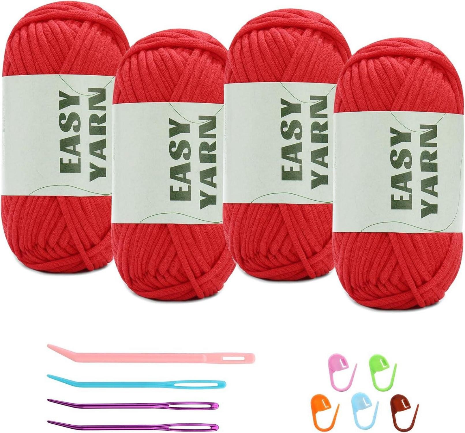 Dieses 4er-Set rotes Garn ist ideal für Anfänger und erfahrene Häkelfans. Das Baumwoll-Nylon-Mischgarn bietet eine mäßige Elastizität und Weichheit, ideal für verschiedene Häkelprojekte. Mit diesem Garn können Sie Schals, Kleidungsstücke, Decken, Wohnaccessoires, Dekorationen und vieles mehr herstellen.