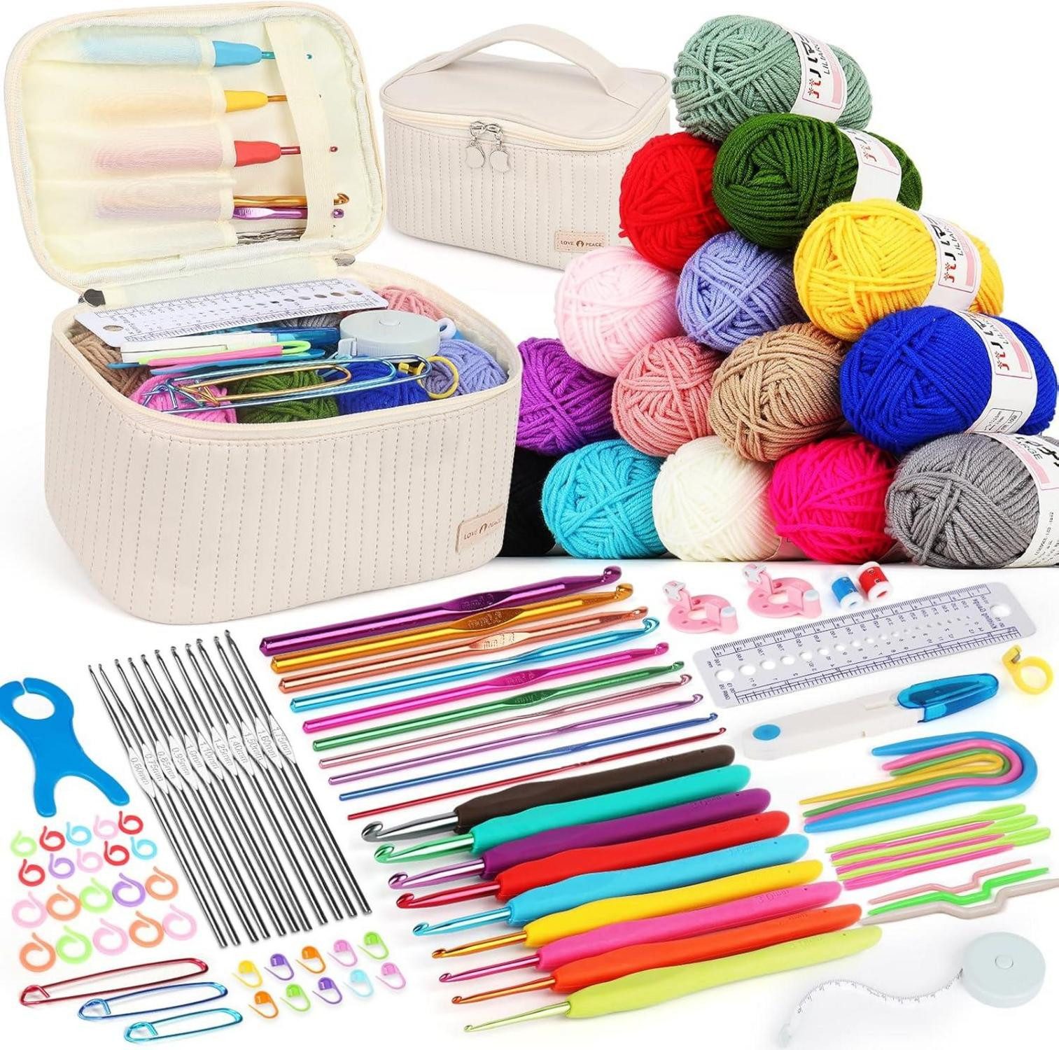 Das Set enthält insgesamt 15 Acrylwolle, die in verschiedenen Farben erhältlich sind, sowie 100 praktische Teile, darunter 34 Häkelnadeln in verschiedenen Größen und Materialien. Die ergonomischen Nadeln sorgen für eine angenehme Haptik und reduzieren die Belastung von Händen und Handgelenken. Zusammen mit dem umfangreichen Zubehör wie Maschenmarkierern und einer Schere bietet das Set alle notwendigen Werkzeuge, um Ihrer Kreativität freien Lauf zu lassen.