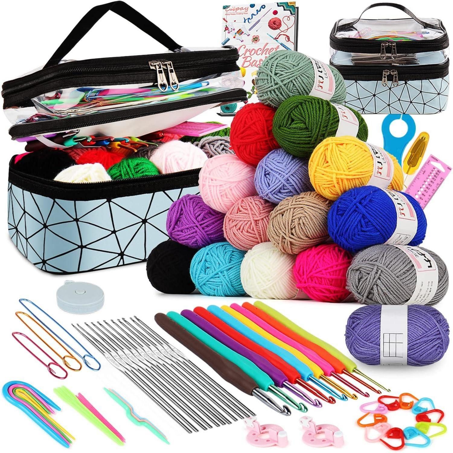 Das Coopay Häkelset für Anfänger ist ein umfassendes Set, das alles bietet, was angehende Häkelkünstler benötigen. Die doppellagige Häkeltasche in stilvollem Blau ermöglicht eine ordentliche Aufbewahrung von 71 Teilen, darunter 21 ergonomische Häkelnadeln in verschiedenen Größen. Die weichen Griffe reduzieren die Belastung der Hände und sorgen für angenehmes Häkeln über längere Zeiträume.Zusätzlich zu den Häkelnadeln enthält das Set 16 Wollknäuel in lebendigen Farben, ideal für verschiedene Projekte und Muster. Die hochwertigen Materialien sorgen für eine reibungslose Häkelerfahrung ohne Fasern, die sich verfangen oder reißen.Mit ausführlichen Anleitungen, die Anfängern Schritt für Schritt das Häkeln beibringen, ist dieses Set perfekt für die ersten Schritte in die Welt des Häkelns. Von einfachen Mustern bis hin zu fortgeschrittenen Stichen bietet das Coopay Häkelset eine Vielzahl von Möglichkeiten, um die Häkelkunst zu meistern.Egal, ob es sich um ein Geschenk für einen geliebten Menschen handelt oder um ein Set für den persönlichen Gebrauch, das Coopay Häkelset für Anfänger ist eine ideale Wahl. Machen Sie sich bereit, Ihre Kreativität zu entfesseln und wunderschöne handgemachte Stücke zu erschaffen!