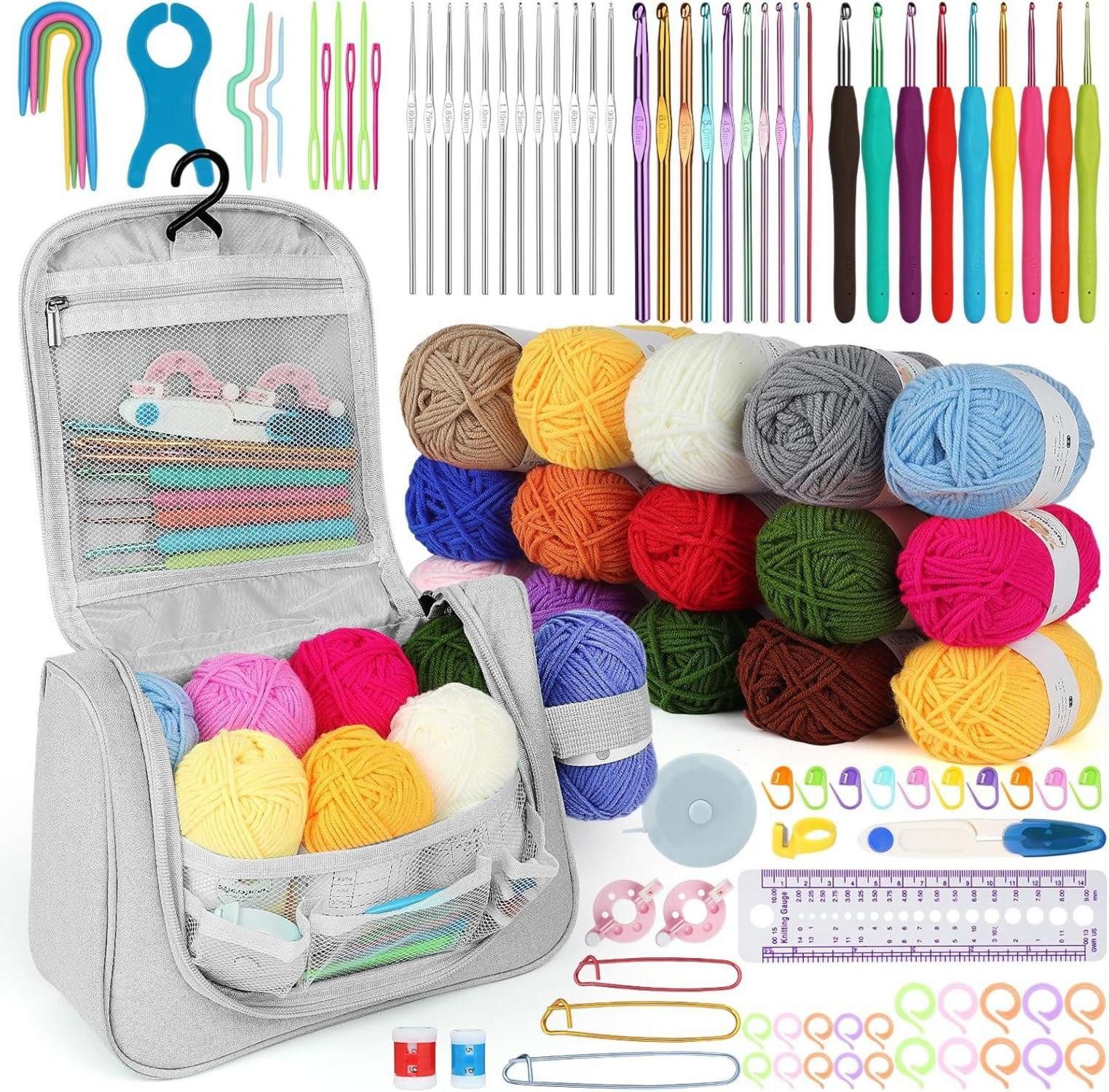 [Häkelset mit praktischer Tasche] - Ideales Woll-Häkelset für Anfänger, mit 1 tragbaren, sichtbaren Tasche für Wollknäuel (24,5 * 8,5 * 18,5 cm), leicht zu transportieren, alles ist gut verstaut, damit Sie überall mit dem Häkeln beginnen können. Die Tasche enthält alle notwendigen Materialien, um mit dem Häkeln zu beginnen, perfektes Geschenk für Frauen zu Muttertag, Weihnachten, Neujahr und Geburtstag für Ihre Großmutter, Mutter, Freundin.