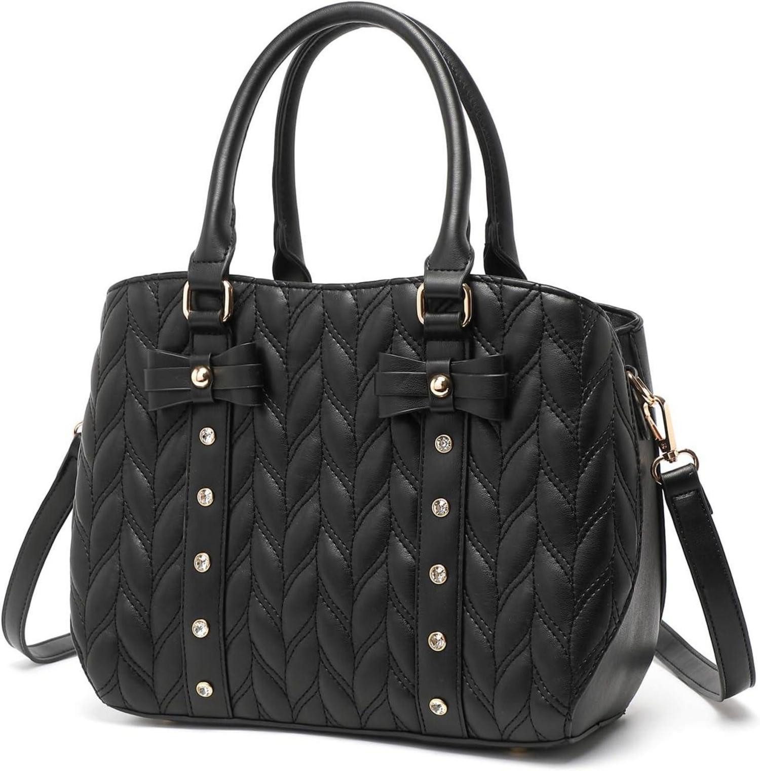 Mit Maßen von 10,2 x 9 x 5,1 Zoll bietet die Tasche ausreichend Platz für Essentials wie Lippenstift, Smartphone, Geldbörse und mehr. Der 6,2 Zoll lange Henkel und der abnehmbare Schultergurt ermöglichen es Ihnen, die Tasche bequem als Handtasche, Schulter- oder Umhängetasche zu tragen. Das elegante gesteppte Blattmuster, der charmante Bogen und die glitzernde Kristallschnalle verleihen der Tasche eine raffinierte Note, die jedes Outfit aufwertet.