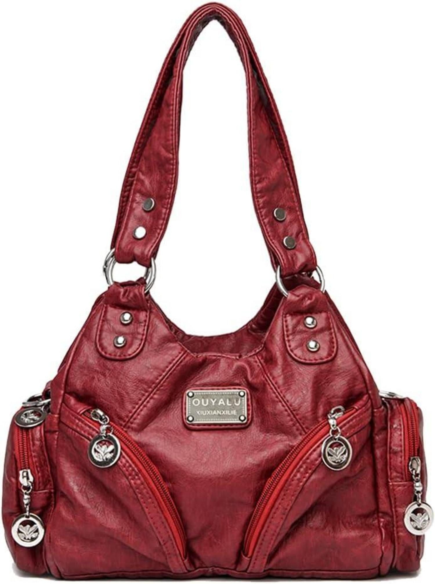 Hobo Damenhandtasche PU-Leder Hobo Schultertasche Umhängetasche Vintage Rot
