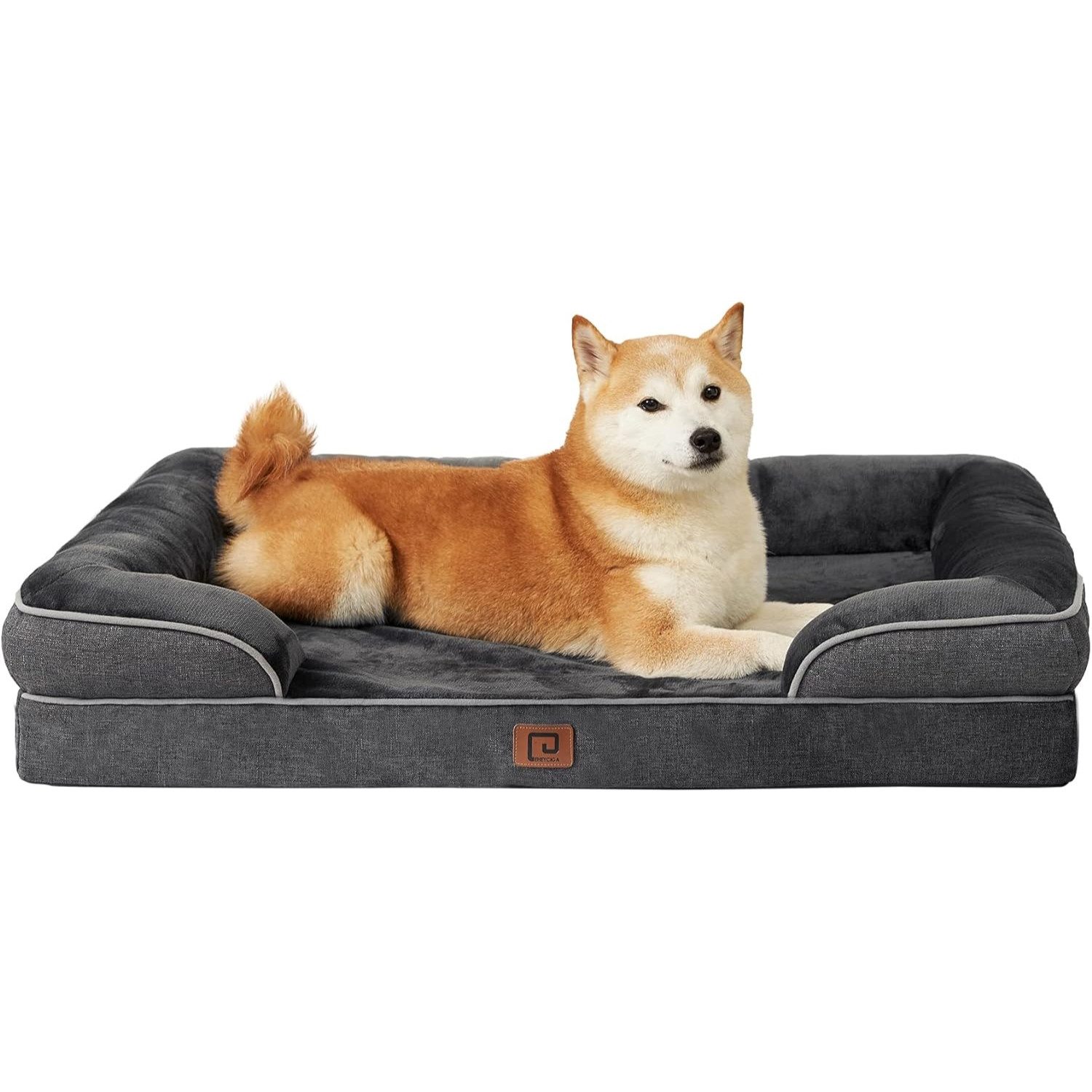 Orthopädisches Hundebett Grosse Hunde, Memory Foam Hundekorb Mittelgroße Hunde, Waschbar Hundesofa Wasserdicht rutschfest, Hundecouch mit Hohem RandDas EHEYCIGA Orthopädische Hundebett ist speziell für den Komfort Ihrer pelzigen Freunde entwickelt. Mit einer einzigartigen Kombination aus Eierschalen- und Memory-Schaum bietet es die optimale Unterstützung für große und mittelgroße Hunde. Die Eierschalenform auf einer Seite verteilt den Druck gleichmäßig, während der Memory-Schaum auf der anderen Seite für zusätzliche Weichheit sorgt.Das Hundebett in Form eines Sofas verfügt über Nackenrollen an drei Seiten, die den Kopf Ihres Hundes sanft stützen und ein Gefühl der Geborgenheit vermitteln. Dadurch wird Ihrem Haustier geholfen, besser zu schlafen und Stress abzubauen.Dank der wasserdichten Membran unter dem weichen Flanell bleibt der Schaum vor Flüssigkeiten geschützt. Die rutschfeste Unterseite sorgt für Stabilität, während der abnehmbare Bezug und der waschbare Stoff die Reinigung zum Kinderspiel machen.Das Hundebett ist in verschiedenen Größen erhältlich, sodass Sie die perfekte Passform für Ihren Hund auswählen können. Egal ob groß, mittelgroß oder klein, dieses Bett bietet Luxus und Komfort für jeden Vierbeiner.Investieren Sie in das Wohlbefinden Ihres Hundes mit dem EHEYCIGA Orthopädischen Hundebett und geben Sie ihm den Schlaf, den er verdient.