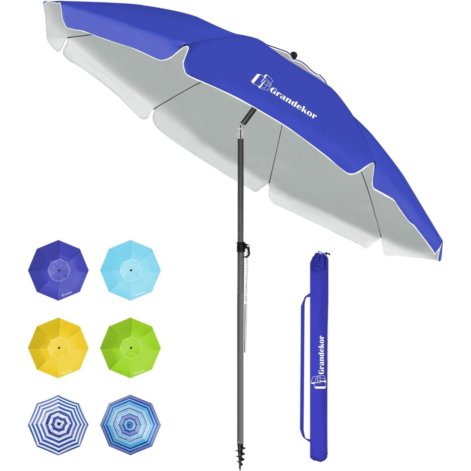 Der Grandekor Sonnenschirm Ø180cm ist der ideale Begleiter für sonnige Tage am Strand, auf dem Balkon oder im Garten. Mit seinem hochwertigen 210D Oxford-Gewebe und der PU-Silber-Innenbeschichtung bietet er einen UV-Schutzfaktor von 50+, um Sie vor den schädlichen Auswirkungen der Sonne zu schützen. Zudem ist der Sonnenschirm wasserdicht und blockiert 98% der UV-Strahlen, um Ihnen ein angenehmes Schattenplätzchen zu bieten.