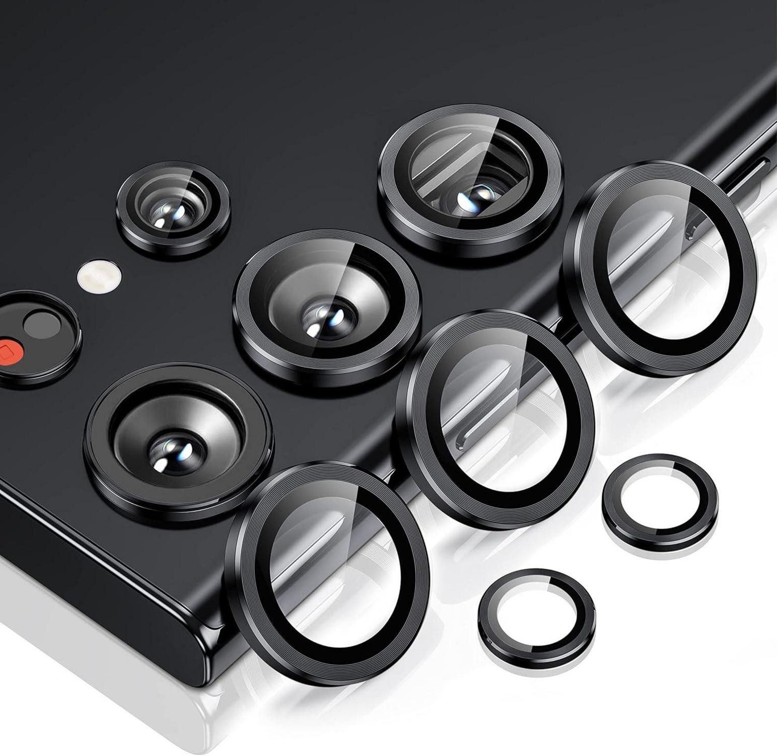 WSKEN Kameraschutz für Samsung Galaxy S23 Ultra Kamera Schutzfolie, Kratzfestes dünnes gehärtetes Glas mit Individuell Metallring Kamera Schutzfolie, Schwarz
