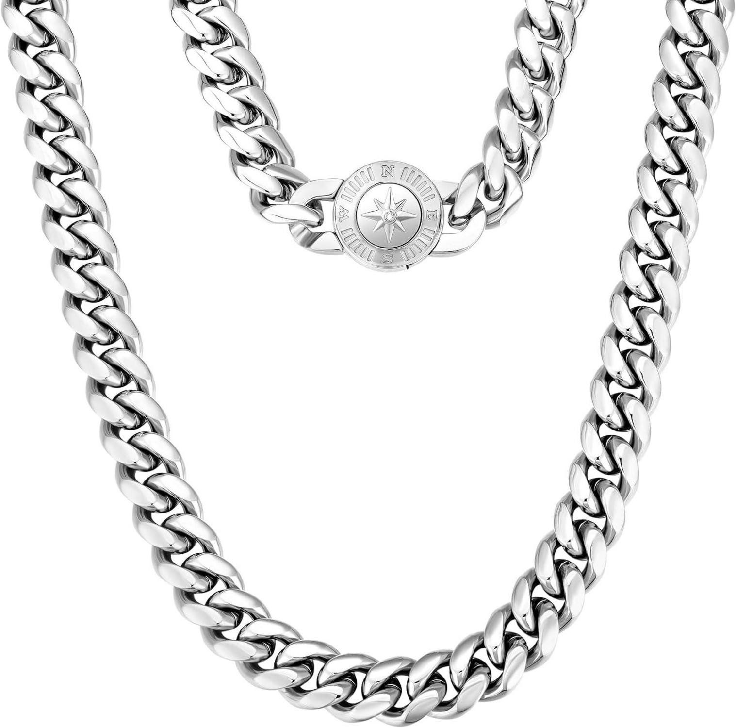 Die 50,8cm lange Kette mit einer Breite von 12mm wurde mit einem neu aktualisierten runden Kompass-Muster Verschluss versehen, der nicht nur einzigartig aussieht, sondern auch robust und sicher ist. Die doppelte elektronische PVD-Galvanotechnik sorgt für einen brillanten Effekt auf der klassischen Panzerkette. Die Oberfläche mit Beschichtung schützt vor dem Verblassen der Farbe, und da die Kette hypoallergen und nickelfrei ist, eignet sie sich auch für empfindliche Haut. Stil, Qualität und Tragekomfort vereinen sich in dieser KRKC&CO Halskette zu einem begehrenswerten Accessoire.
