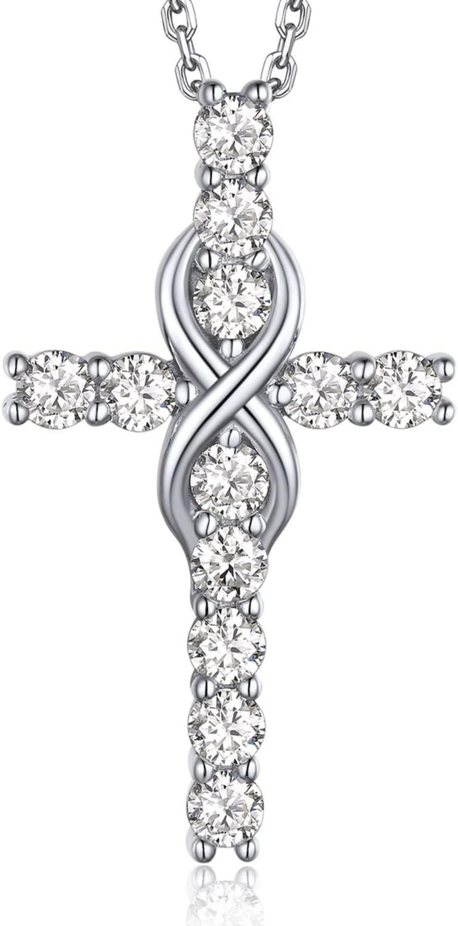 Die MomentWish Kreuz Kette Moissanite ist nicht nur ein Schmuckstück, sondern auch ein Symbol für Glauben und Liebe. Hergestellt aus hochwertigem S925-Sterlingsilber, ist diese Halskette hypoallergen und angenehm zu tragen. Der Anhänger in Form eines Kreuzes ist mit funkelnden Moissanite Steinen im Gesamtgewicht von 1,2 Karat verziert. Diese Moissanite Steine besitzen die Diamantqualität D Farbe und VVS1 Reinheit, was ihnen ein unglaubliches Feuer und Glanz verleiht. Jeder Stein wurde sorgfältig ausgewählt, um die Vollkommenheit und Schönheit des Anhängers zu gewährleisten.Das Infinity Design der Kette symbolisiert ewige Liebe und Glauben an Gott. Diese Kette ist ein zeitloses und bedeutungsvolles Geschenk für Ihren Partner zum Valentinstag, Jahrestag oder anderen besonderen Anlässen. Die Kombination aus klassischem Design und modernem Glanz macht sie zu einem einzigartigen Accessoire. Verleihen Sie Ihrem Outfit mit dieser Kreuzkette einen Hauch von Eleganz und Stil.Zeigen Sie Ihren Glauben und Ihre Zuneigung mit dieser stilvollen Kreuzkette. Verpackt in einer exquisiten Geschenkbox ist sie bereit, Ihrem geliebten Menschen Freude zu bereiten. Schenken Sie die MomentWish Kreuz Kette Moissanite und zeigen Sie Ihre aufrichtige Liebe und Verbundenheit.