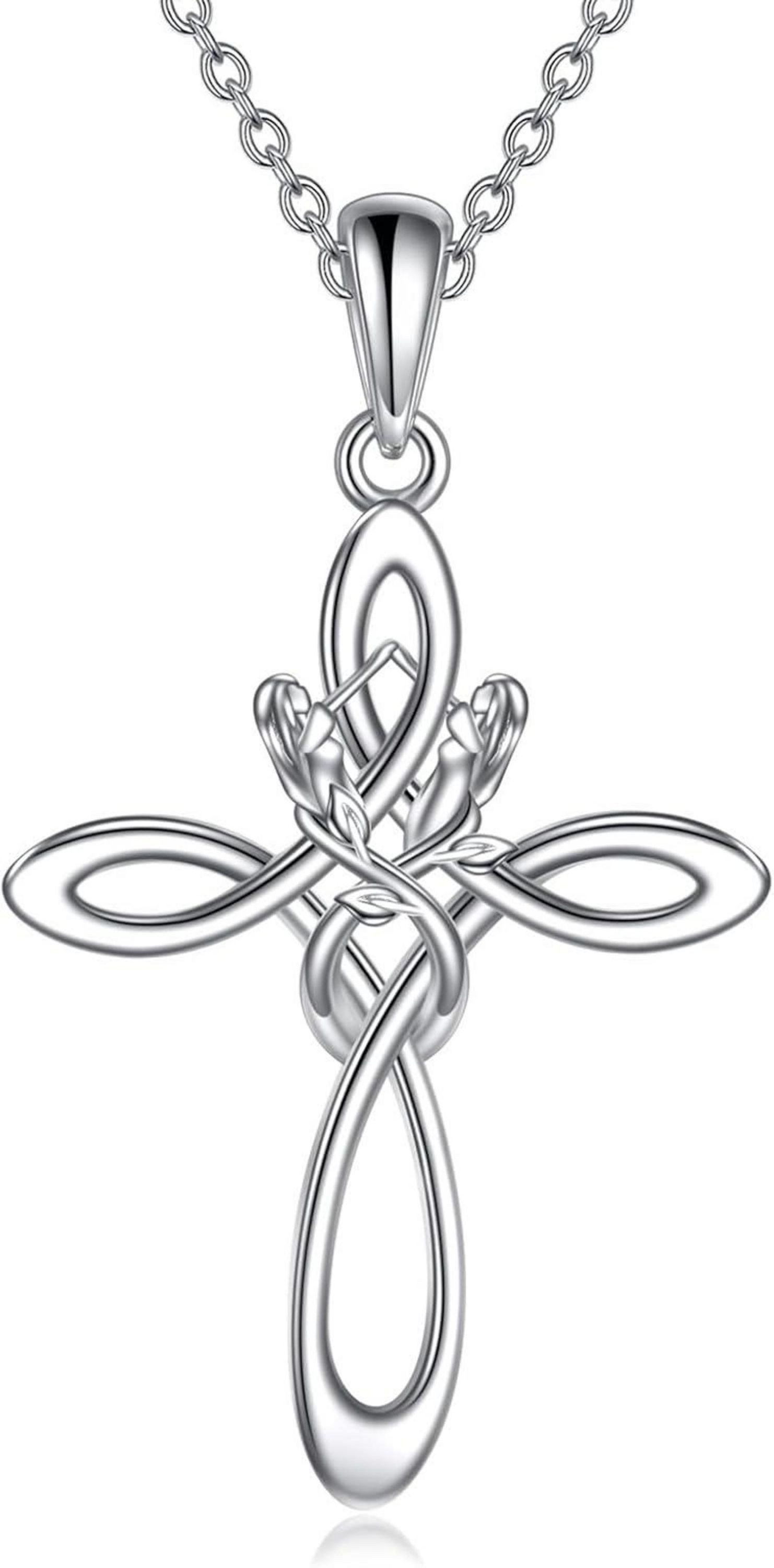 Die VONALA Schwestern Kreuz Halskette mit Keltischem Knoten Anhänger ist eine wunderschöne Darstellung von ewiger Freundschaft und Zusammenhalt. Handgefertigt aus hochwertigem 925 Sterling Silber mit einer weiß vergoldeten Oberfläche, ist diese Halskette hypoallergen, nickelfrei und bleifrei, somit ideal für empfindliche Haut.