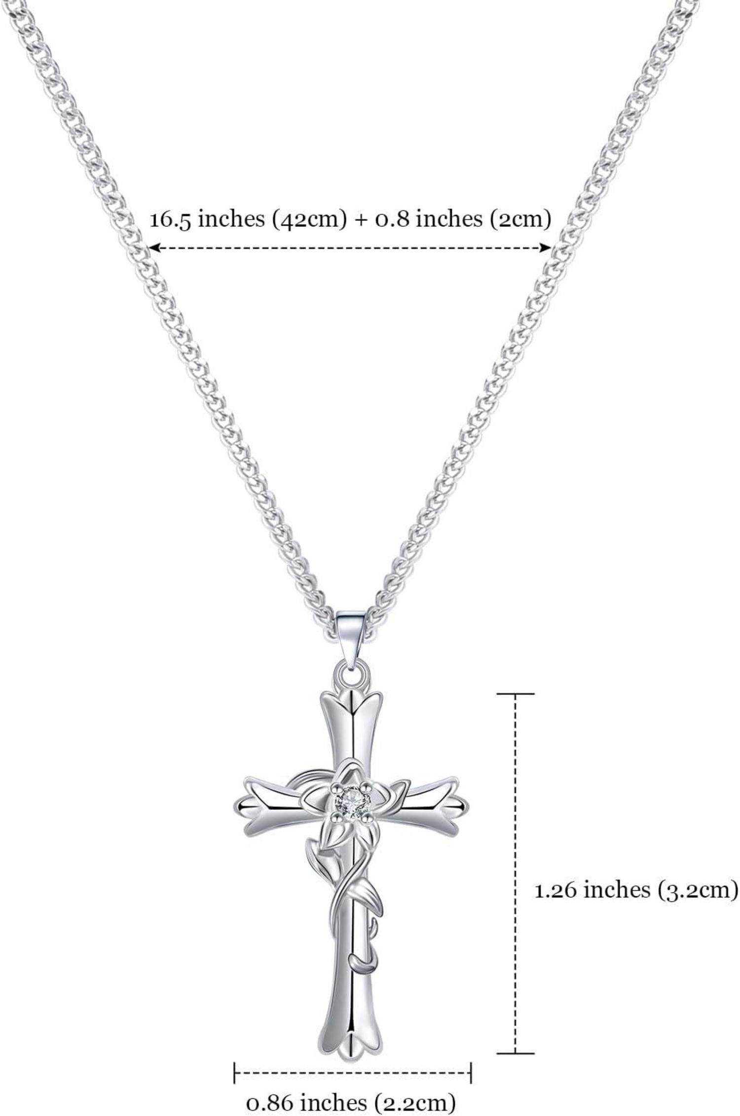 Der Anhänger in Kreuzform ist 1,2 Zoll (3 cm) lang und 0,9 Zoll (2,2 cm) breit, während die Kettenlänge 16,5 Zoll (42 cm) beträgt, mit einer zusätzlichen 0,8 Zoll (2 cm) Verlängerungskette für individuelle Anpassung. Jede Halskette wiegt leichte 0,3 Unzen (8,8 Gramm) und wird in einer ansprechenden Schachtel geliefert, bereit zum Verschenken.
