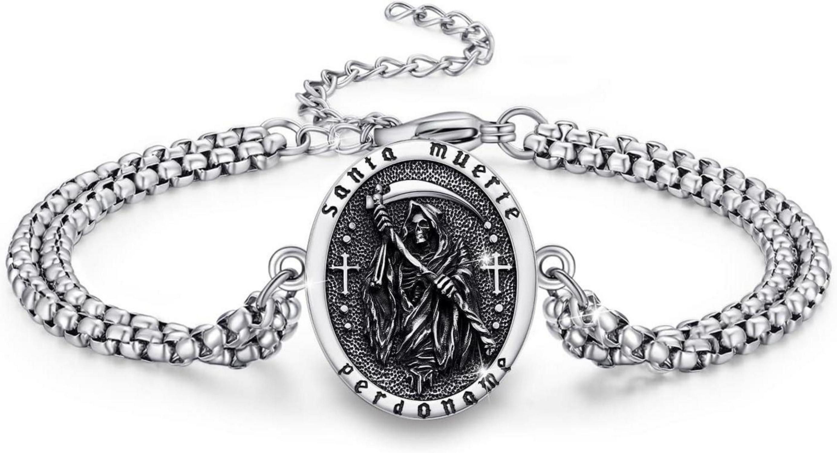 Grim Reaper Armbänder Material: Gothic Verstellbar Armband ist aus 925 Sterling Silber gefertigt. Santa muerte Armband nickelfrei, bleifrei, cadmiumfrei. Hypoallergen, sicher für empfindliche Haut.