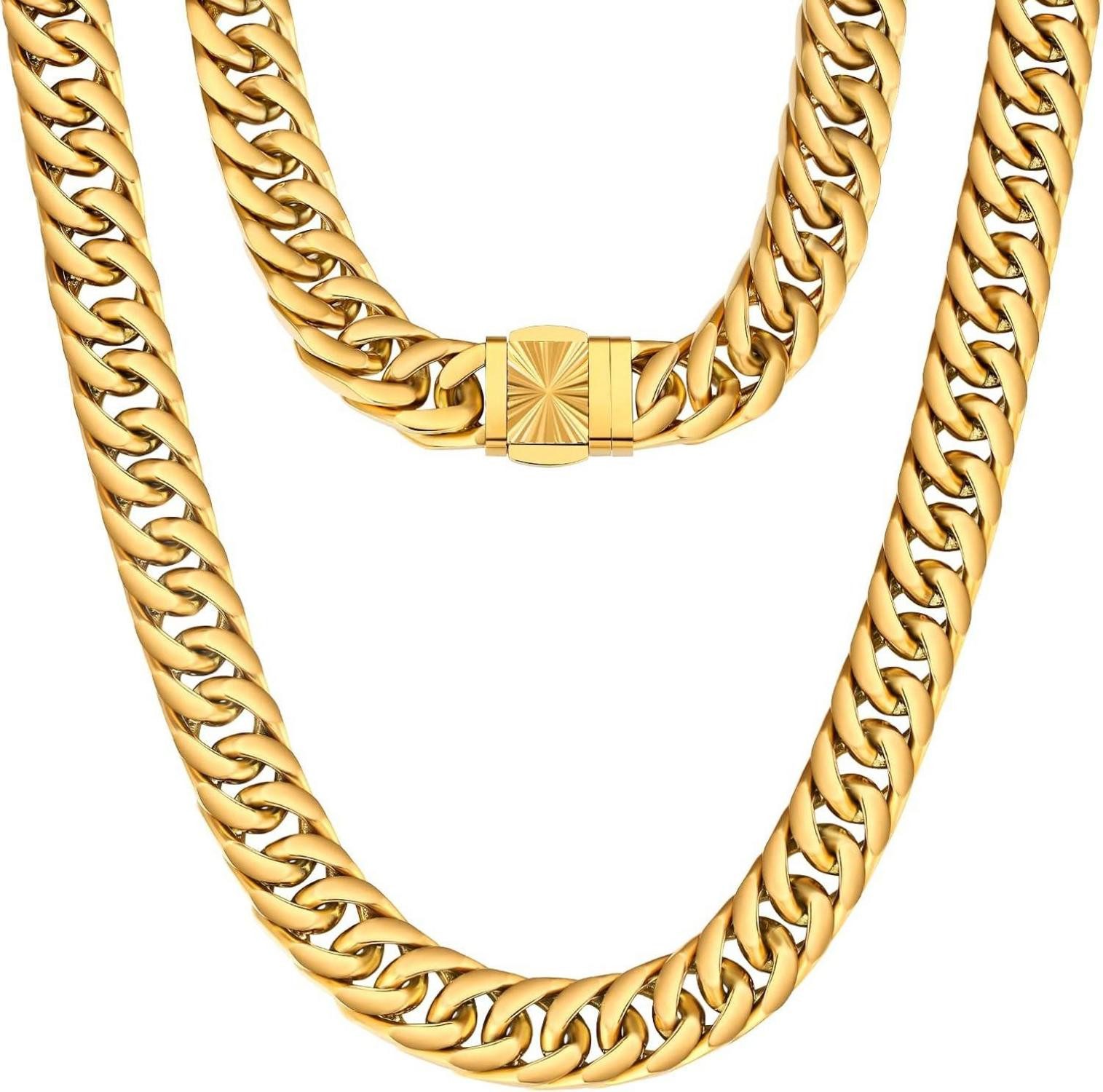 Dank der doppelten elektronischen PVD-Galvanotechnik bleibt der Glanz dieses Armbands jahrelang erhalten. Die Beschichtung mit 18K Gold verhindert, dass Ihre Haut verfärbt und die Farbe des Armbands verblassen könnte. Diese hochwertige Verarbeitung garantiert, dass Ihre Kubanische Gliederkette immer strahlen wird.