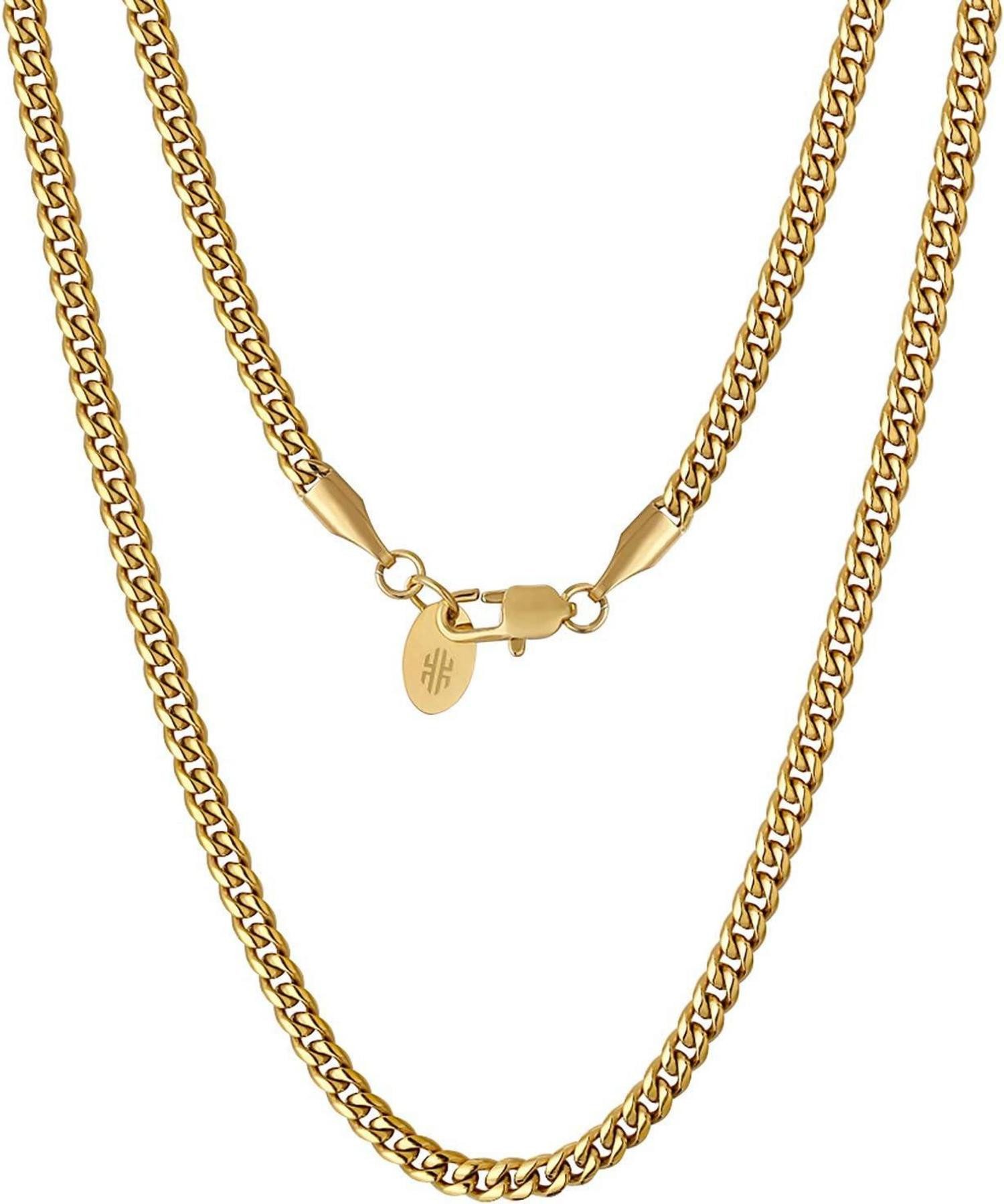 Glänzend halten für immer: Wir verwenden Edelstahl als Grundmaterial und die doppelte elektronische PVD-Galvanotechnik, um einen dauerhaften Glanz zu erzielen. Die Oberfläche der Cuban Link Chain ist mit 18 Karat Gold beschichtet, damit Ihre Haut nicht grün wird und die Farbe 1-3 Jahre lang nicht verblasst. Jede Edelstahl Panzerkette reflektiert viel Licht, um den Bling-Bling-Effekt zu erzielen.