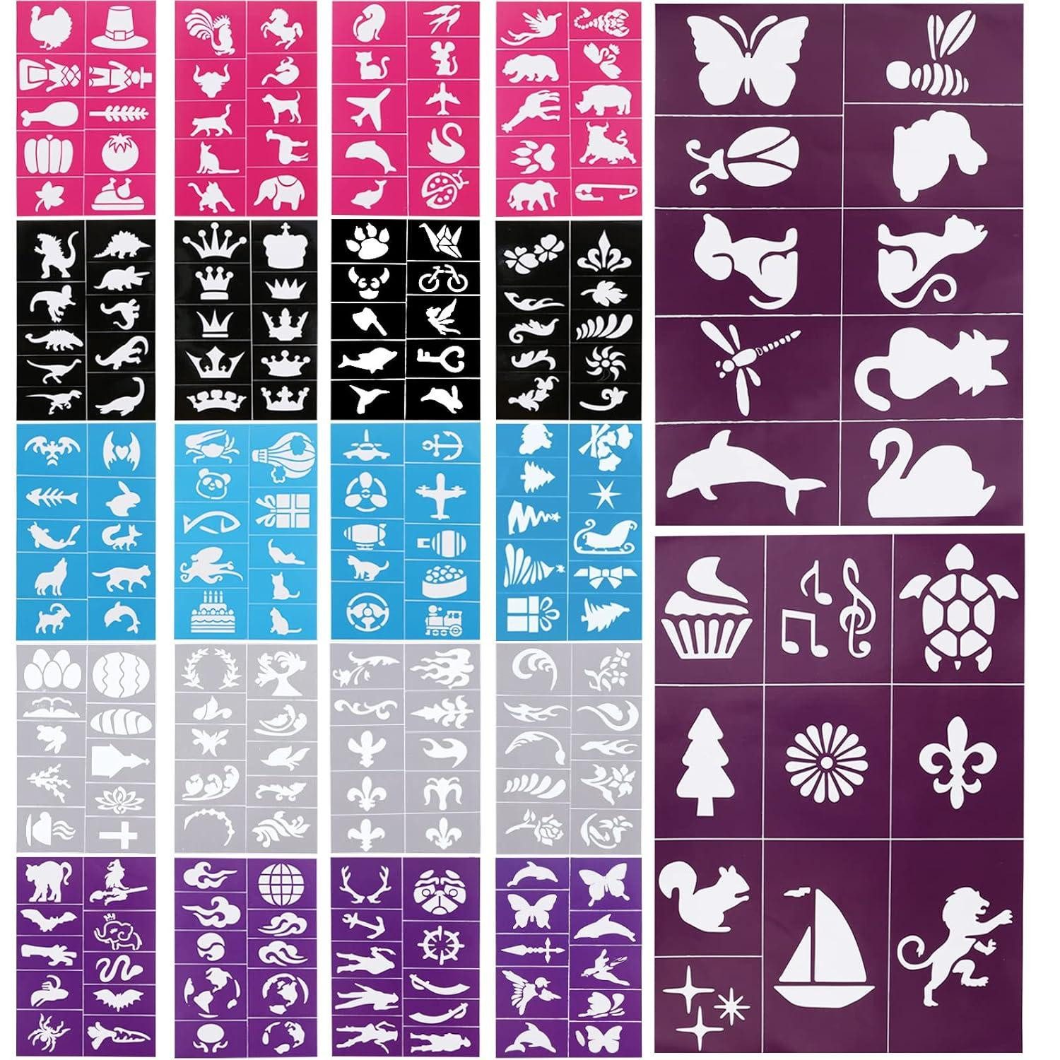 Das 22 Blatt Tattoo Schablonen Kinder Set mit 240 Stück wiederverwendbaren Schablonen ist das ideale Geschenk für Kinder und Erwachsene. Die selbstklebenden Schablonen aus Weich-PVC bieten Schutz vor Hautreizungen und sind ungiftig, unzerbrechlich und sicher für die Anwendung.
