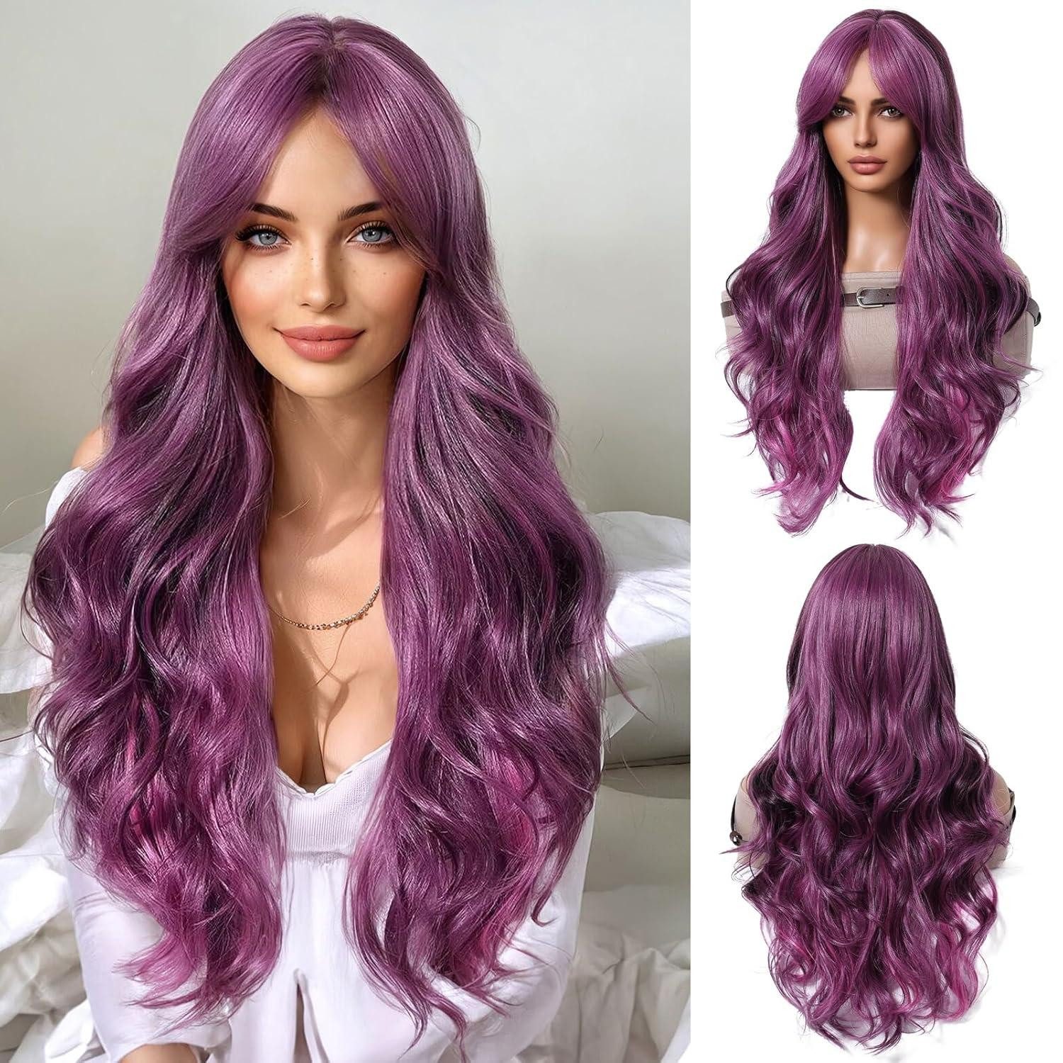 Suchen Sie nach einer Perücke, die Ihren Look verwandeln kann? Die lange lila Perücke mit Pony und natürlichen Wellen ist die Antwort! Mit hitzebeständigen synthetischen Haaren gefertigt, können Sie sie nach Ihren Wünschen stylen. Egal ob für Cosplay, Halloween, Hochzeiten oder den täglichen Party-Look, diese Perücke ist vielseitig einsetzbar.