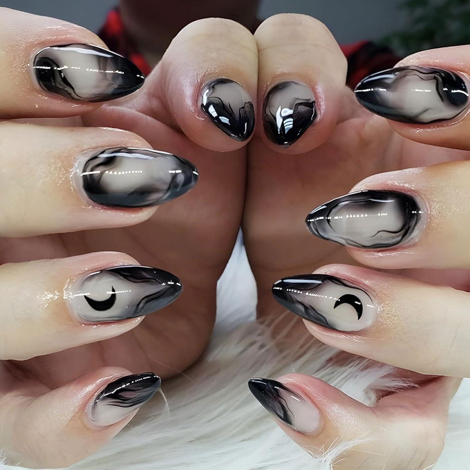 Einzigartiges Design: Unsere künstlichen Nägel zeichnen sich durch ein modisches Design mit gothisch schwarzem Ombre und mondförmigen Akzenten aus. Diese modernen Elemente machen Ihre Nägel zu einem echten Blickfang und verleihen Ihrem Look einen einzigartigen Touch. Perfekt für besondere Anlässe oder um Ihrem Alltagsstil das gewisse Etwas zu verleihen.