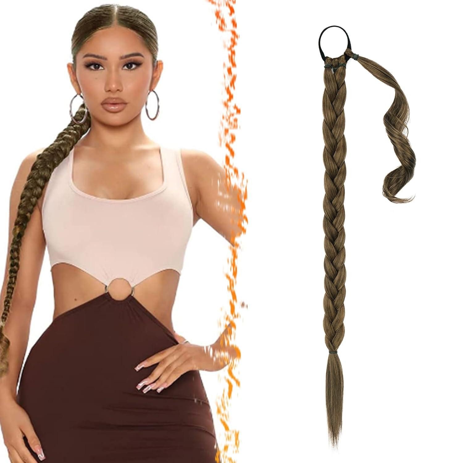 Beschreibung: Lassen Sie Ihr Haar mit unserer 66 cm langen geflochtenen Pferdeschwanzverlängerung in Goldbraunem Erdbeerblond erstrahlen. Dieses Pferdeschwanz-Verlängerungsgummiband ist die perfekte Lösung, um Ihrem Look einen sofortigen Ausdruck zu verleihen. Hergestellt aus hochwertiger hitzebeständiger Kunstfaser, ist diese Verlängerung leicht, wiederverwendbar und pflegeleicht. Mit einem integrierten Haargummi lässt sie sich einfach befestigen und ermöglicht das Erstellen verschiedener Frisuren wie Bubble Braids oder Fischgrätenzöpfe in Minuten.