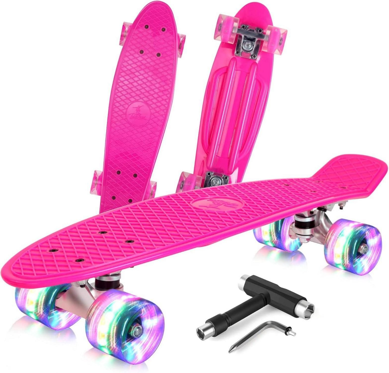 Ein Highlight dieses Skateboards sind die leuchtenden Räder, die eine spaßige und coole Fahrt garantieren. Die LED Leuchtrollen leuchten während der Fahrt auf, ohne dass Batterien ausgetauscht oder aufgeladen werden müssen. Dadurch wird jede Fahrt zu einem unvergesslichen Erlebnis.