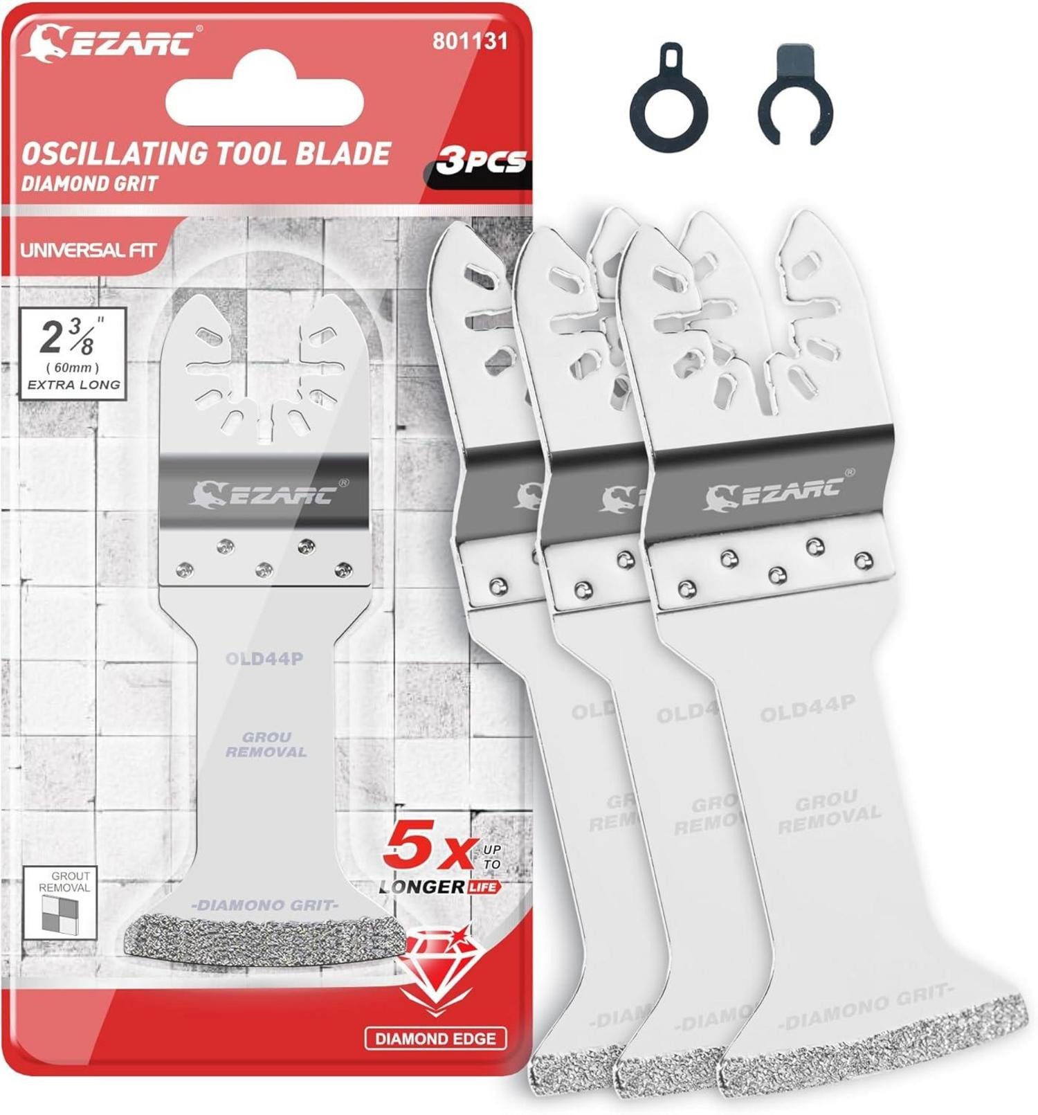 Die EZARC 3tlg Diamant Multitool Sägeblätter mit extra großer Reichweite sind die ideale Lösung für verschiedene Renovierungs- und Wartungsarbeiten im Haushalt. Mit diesen oszillierenden Sägeblättern können Sie mühelos defekten Fliesenmörtel entfernen, Mörtel, Putz und Beton reinigen, Fugen säubern und Terrassenarbeiten durchführen.