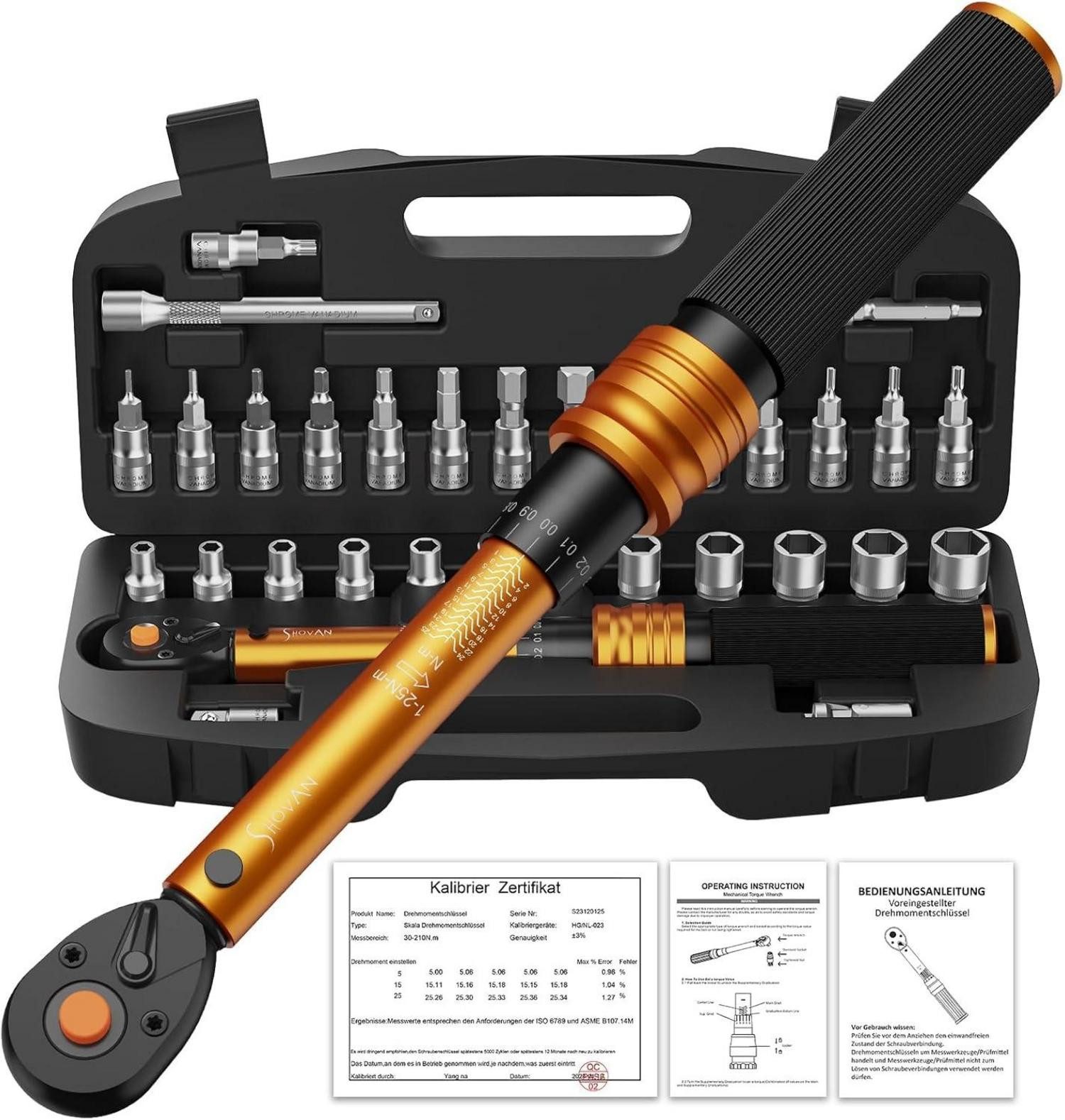 Das 33-teilige Drehmomentschlüssel Set ist die perfekte Lösung für präzises Anziehen von Schrauben und Muttern. Es beinhaltet 8 Sechskant-Bits, 5 Torx-Bits, 3 Philips-Bits, 12 Innensechskant-Bits und eine Vielzahl an praktischem Zubehör wie Verlängerungsstangen und Adapter. Der reversible Ratschenkopf mit 72 Zähnen ermöglicht eine einfache Handhabung und schnelle Drehrichtungsänderung.