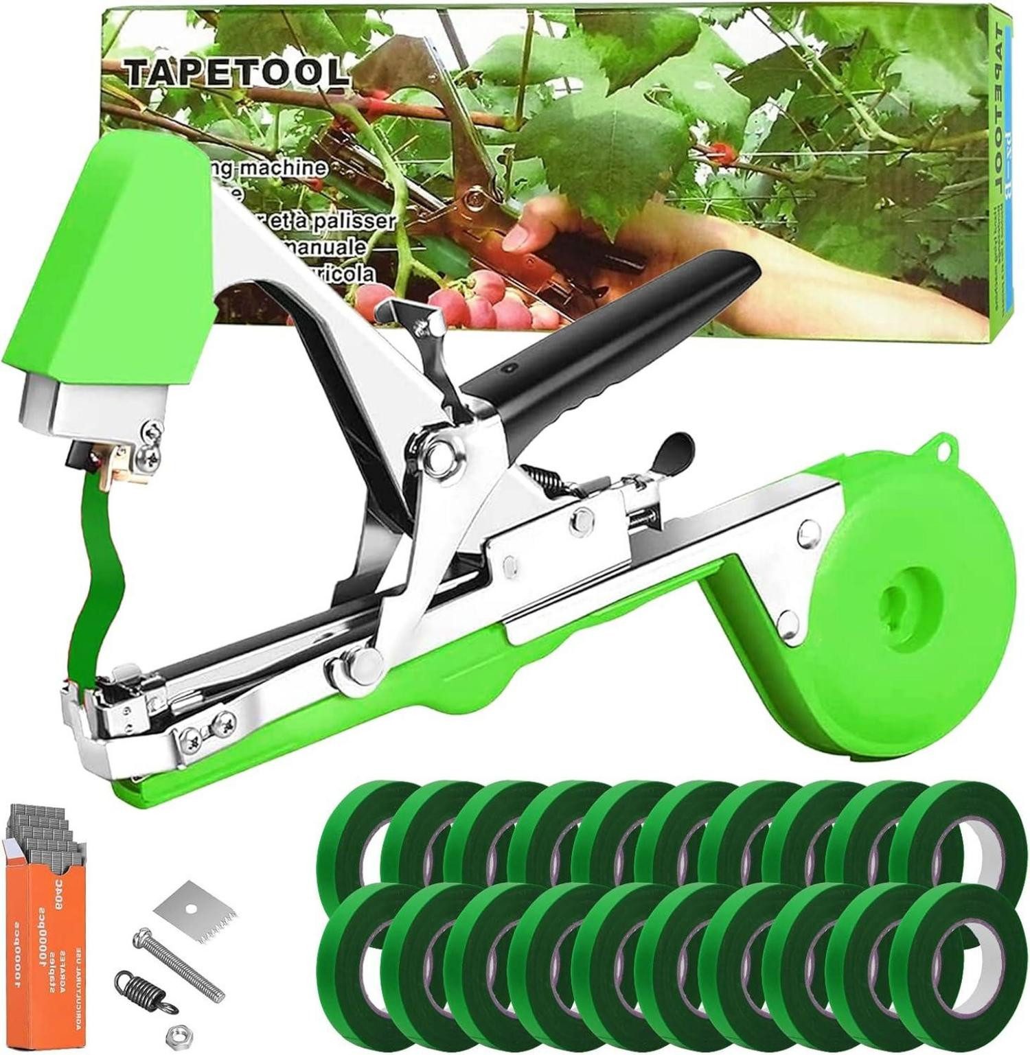 Pflanzenbindemaschine: Unser Pflanzenbindemaschinenset enthält 1 Pflanzenbindemaschine, 1 Schachtel Nägel und 20 Rollen grünes Band, jede Rolle ist 82 Fuß (25 Meter) lang, dies wird Ihnen für eine lange Zeit reichen, alles, was Sie tun müssen, ist Ihre Bestellung und unser Kit ist sofort einsatzbereit, ohne die Notwendigkeit, zusätzliches Zubehör zu kaufen.